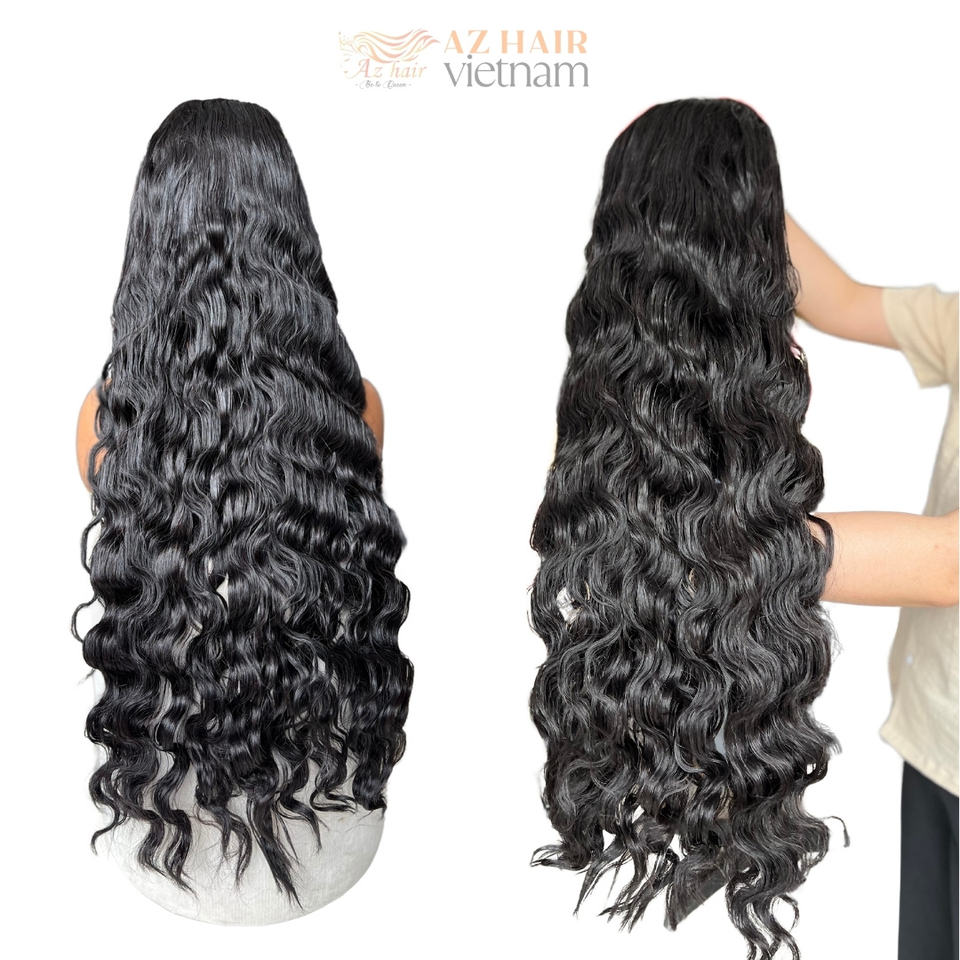วิกผมมนุษย์แบบบราซิลเลียนผมแท้ยาวจัดแนวหนังกำพร้าตามธรรมชาติจากเวียดนาม