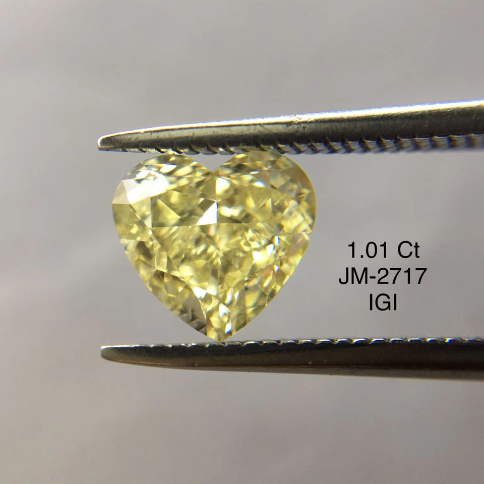 เพชรที่หลวมใส Vs2สีเหลืองแฟนซี1.01กะรัตเพชรทรงหลวมหัวใจสุกใสสำหรับทำเครื่องประดับขายส่งจำนวนมาก
