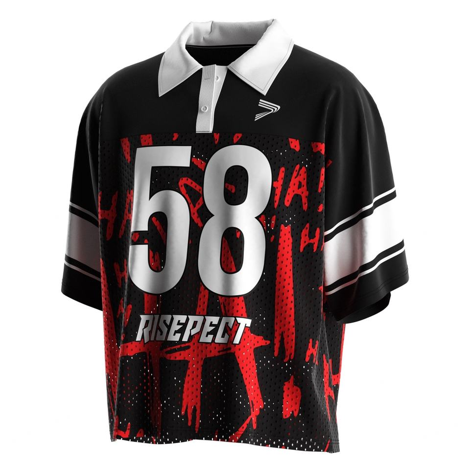 เสื้อโปโลอเมริกันฟุตบอลทรงหลวม เนื้อผ้าซับเหงื่อ ดีไซน์วินเทจ ลายพิมพ์แบบสั่งทำ เหมาะสำหรับชุดทันสมัย