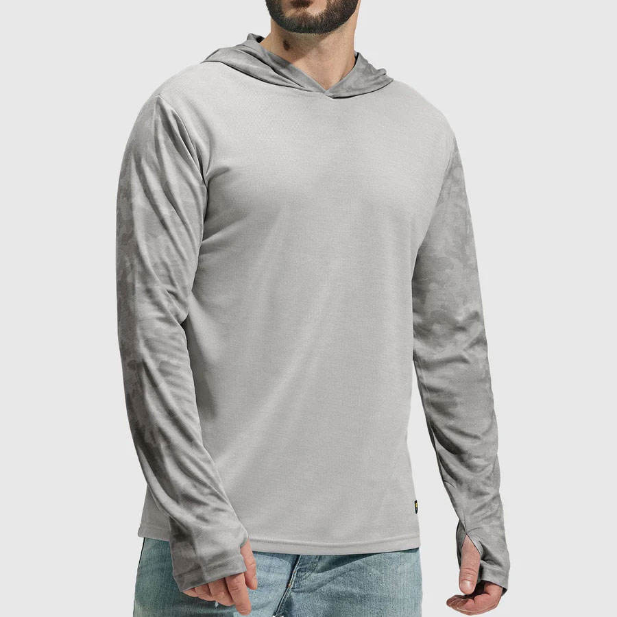 หลวมพอดีเสื้อป้องกันแสงแดด Gery แขนยาวผื่นยามสําหรับเดินป่าตกปลาออกกําลังกาย Hoody
