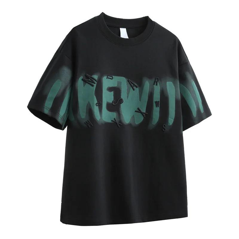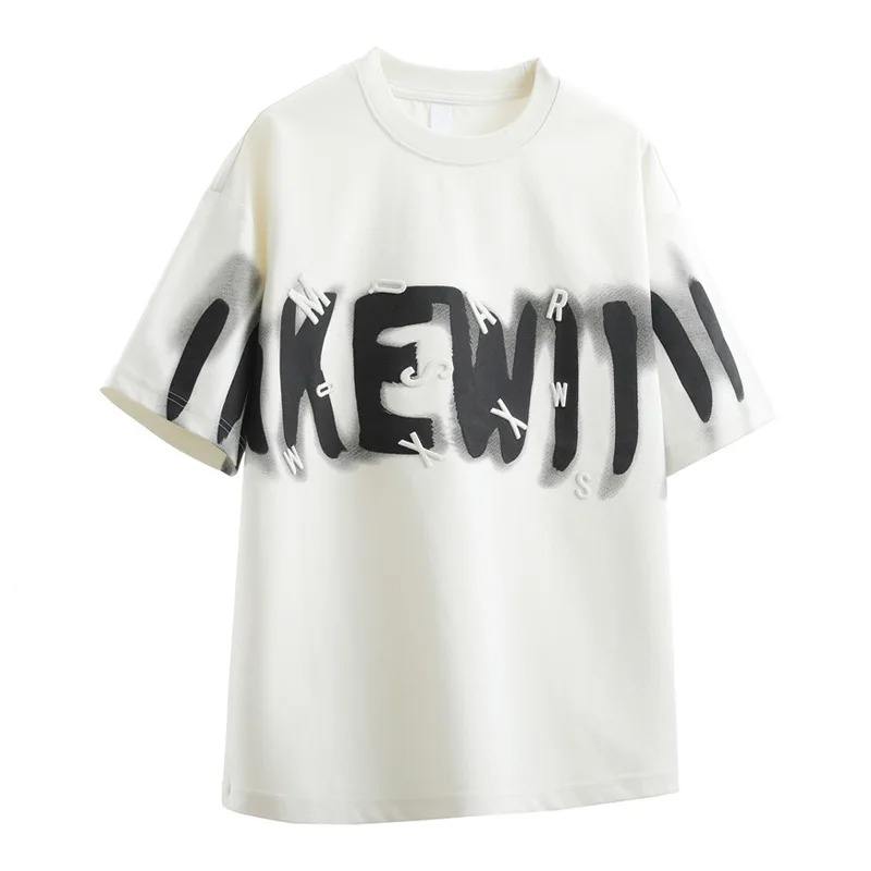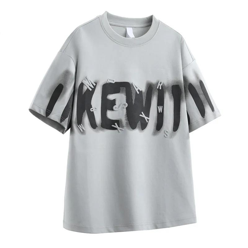 เสื้อยืดผู้ชายทรงหลวมคอกลมแขนสั้นแฟชั่นฤดูร้อนพิมพ์ลายตัวอักษรเสื้อผ้าฝ้ายลำลองสำหรับวัยรุ่นและคนหนุ่มสาว