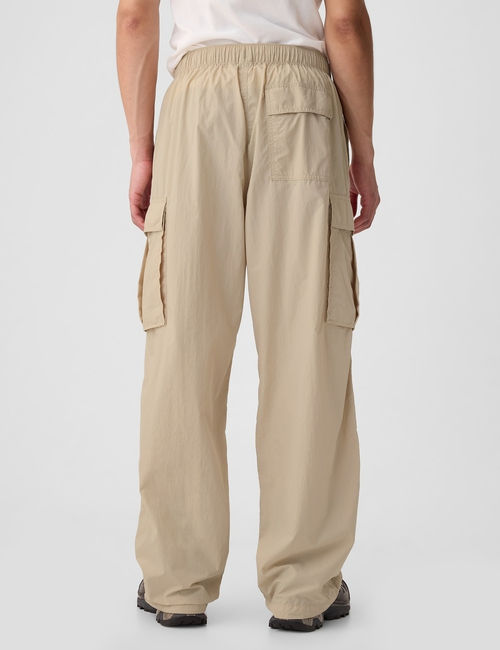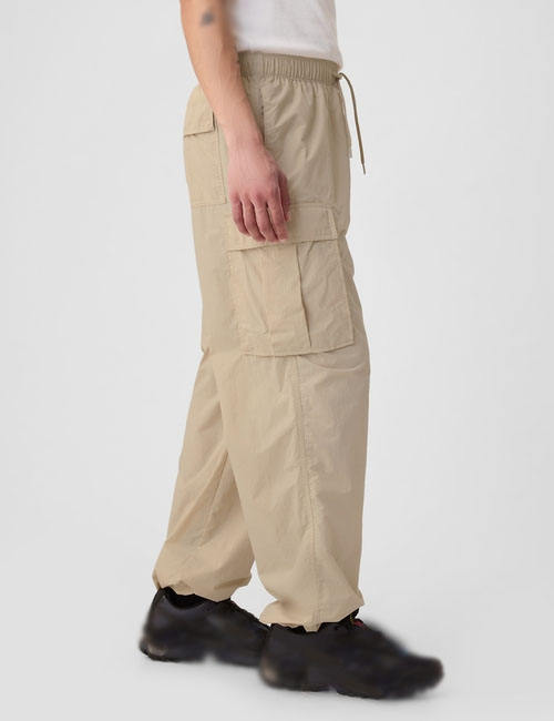 กางเกงคาร์โก้ไนลอนทรงหลวมสำหรับผู้ชาย น้ำหนักเบา มีกระเป๋าหลายช่อง กางเกงยูทิลิตี้ เอวผูกเชือก สวมใส่สบาย เหมาะกับกิจกรรมกลางแจ้ง ผลิตจากโรงงาน