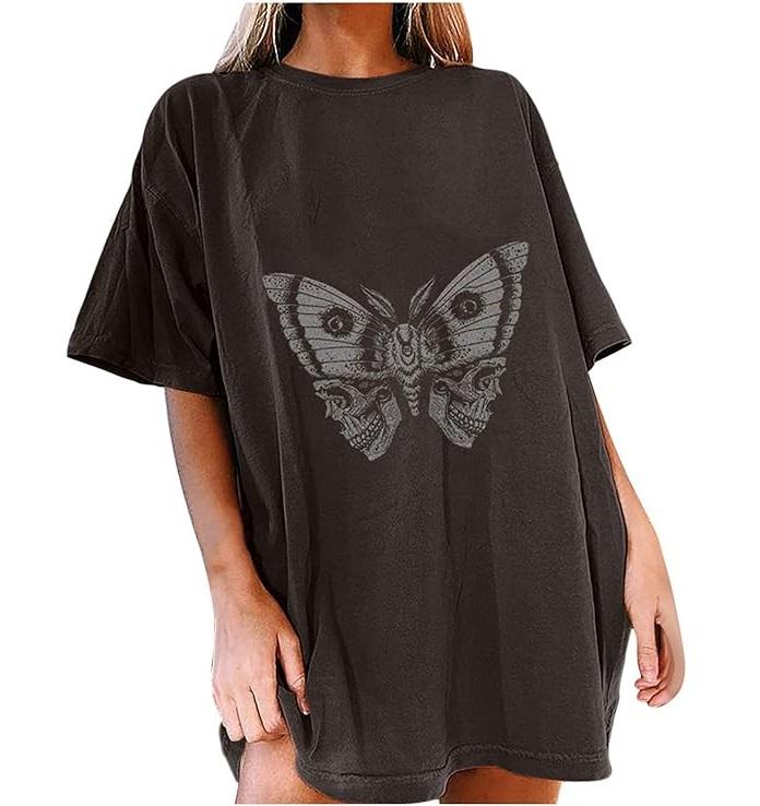 เสื้อยืดผ้าฝ้ายโอเวอร์ไซส์ทรงหลวมสำหรับผู้หญิงพิมพ์โลโก้ DTF เสื้อยืดแฟชั่นฤดูร้อนสำหรับแบรนด์