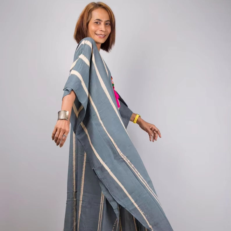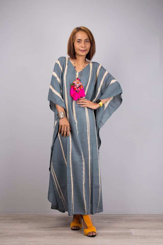 เดรสแม็กซี่สีเทามัดย้อมสำหรับผู้หญิงทรงหลวมโอเวอร์ไซส์