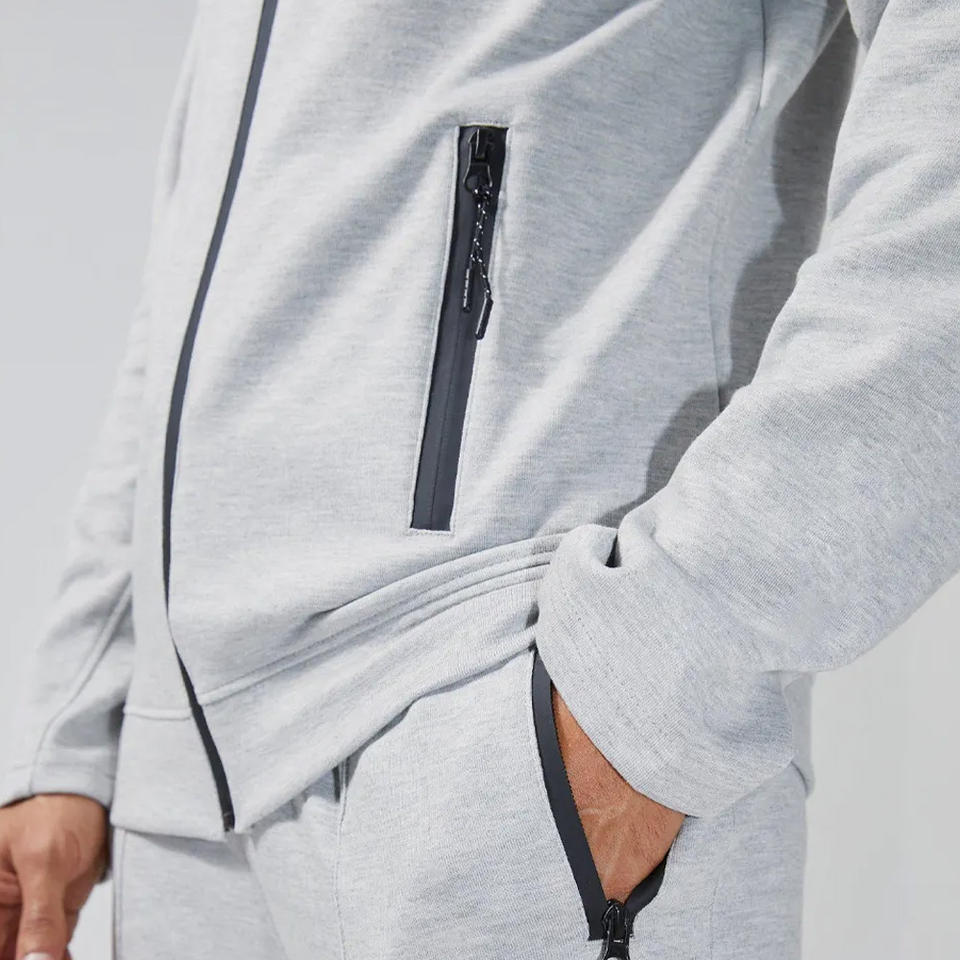 ชุดวอร์มผู้ชายแบบหลวมใส่สบายสำหรับฤดูหนาว 2 in 1 พร้อมเสื้อฮู้ดมีซิป ผ้าฝ้ายฟลีซ 100% คุณภาพสูง ตกแต่งด้วยผ้าแบบ Panel Work ไซส์ใหญ่พิเศษ