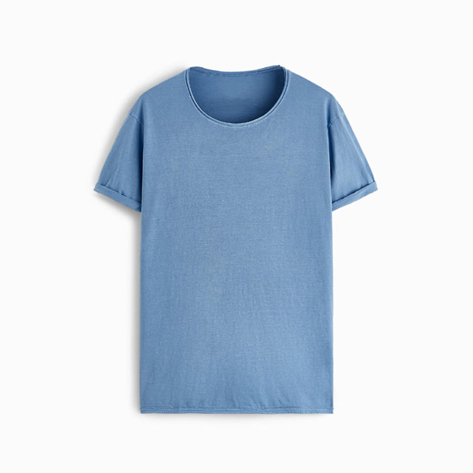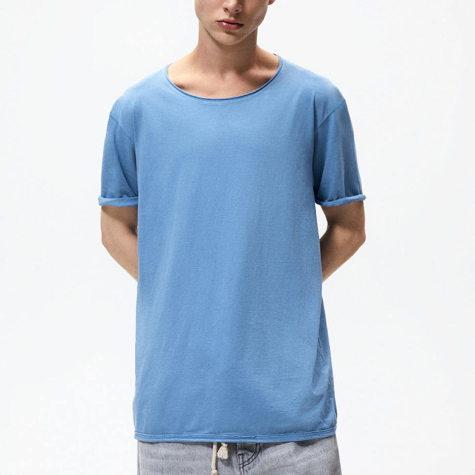 Loose-Fitting T-Shirt With a Round Neckline and Short Turn-Up Sleeves Cotton T Shirt for Men's