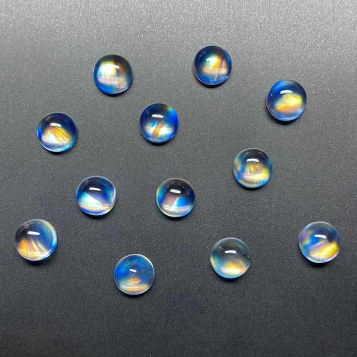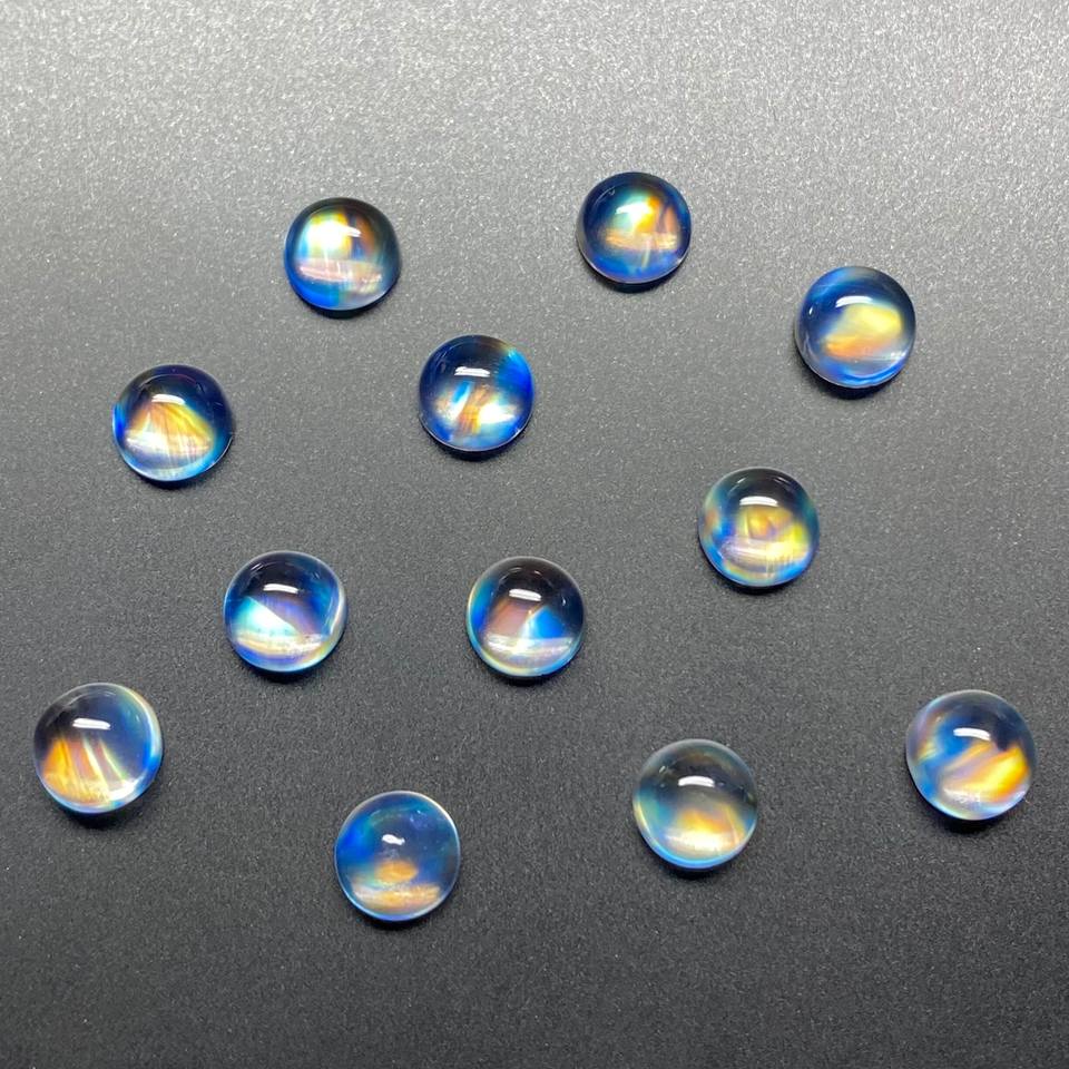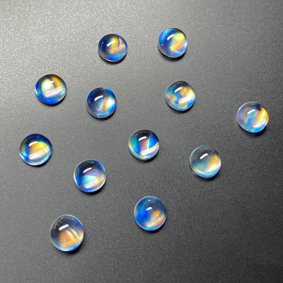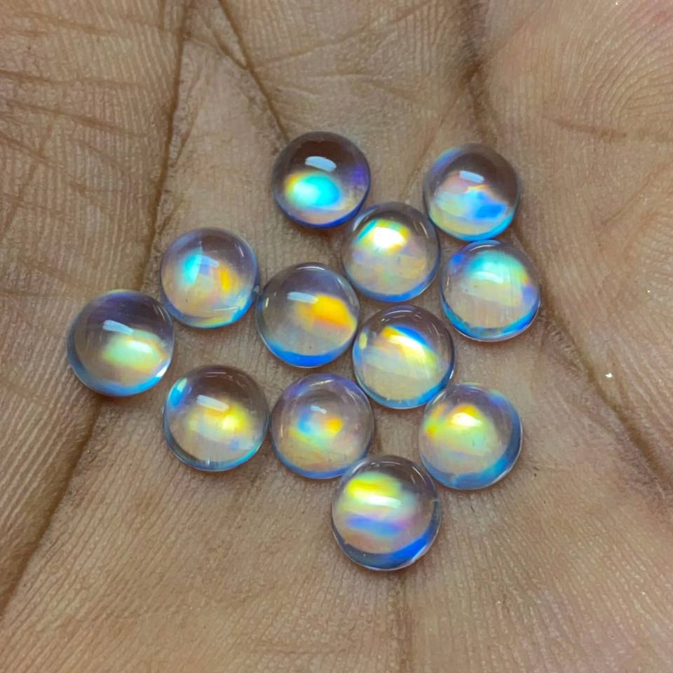 อัญมณีเม็ดเดี่ยวสำหรับทำเครื่องประดับ อัญมณีกึ่งมีค่า มูนสโตนเรนโบว์ไฟ คุณภาพดีที่สุด แบบคาโบชอง ราคาขายส่ง