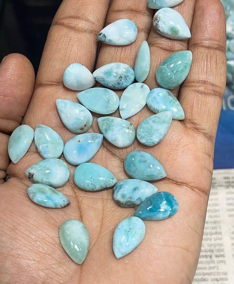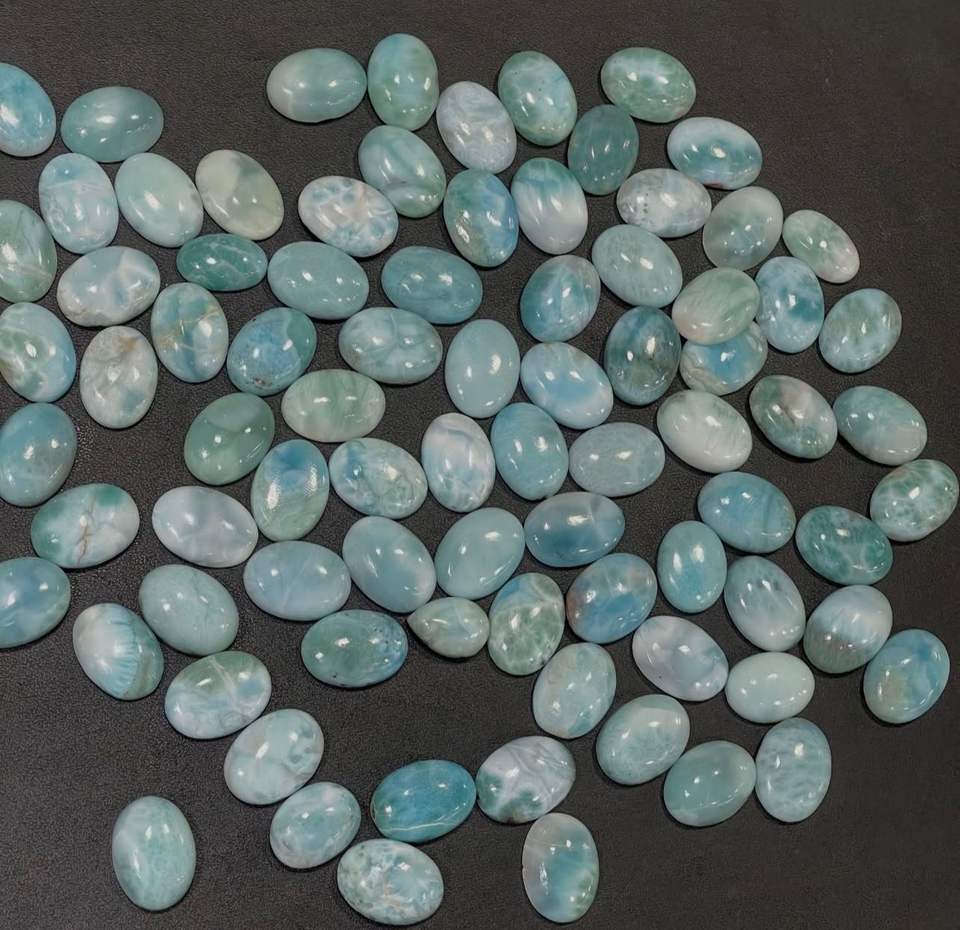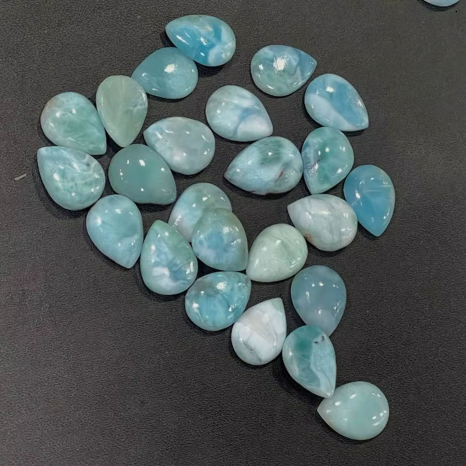 อัญมณีทรงหลังเบี้ยทรงหลวมพลอยสีฟ้าท้องฟ้าธรรมชาติสำหรับทำเครื่องประดับหินทะเลแคริบเบียนขัดรถแท็กซี่งานฝีมือ DIY
