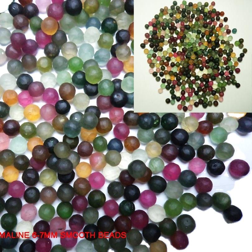 ลูกปัดทัวร์มาลีนหลายสีแบบหลวมขนาด6-7มม. อัญมณีธรรมชาติอัญมณีทัวร์มาลีนแบบหลวม
