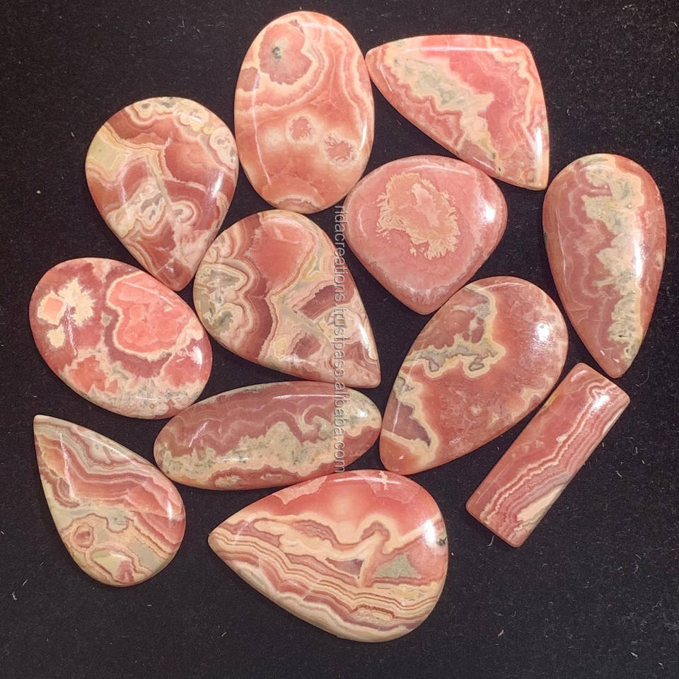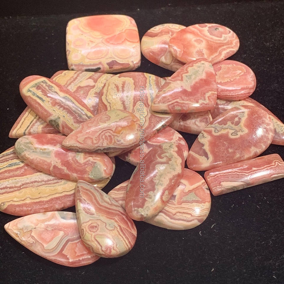 พลอยโรโดโครไซต์อาเกตธรรมชาติคุณภาพสูง รูปทรงเรียบ ขนาด 4-8 มม. ได้รับการรับรองจาก GTC ผลิตโดย Rida Creations สำหรับทำเครื่องประดับ