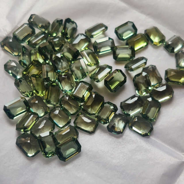 พลอยแซฟไฟร์สีเขียวธรรมชาติขนาด8x6มม. อัญมณีเจียระไนมรกตสำหรับเครื่องประดับแบบสั่งทำ