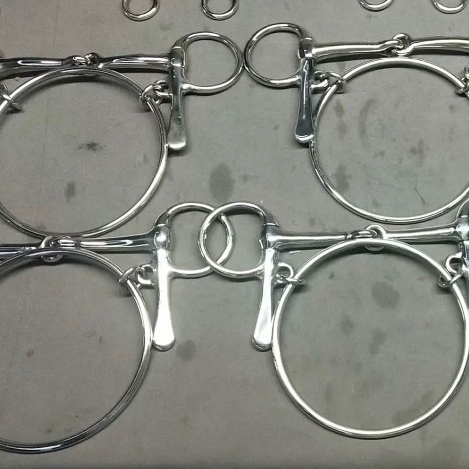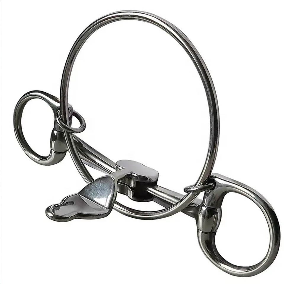 บิตแบบห่วงหลวม คุณภาพสูง สีเงิน-ทอง ข้อต่อเดียว สแตนเลส พร้อมห่วงเสริม 6 อัน เหมาะสำหรับขี่ม้า