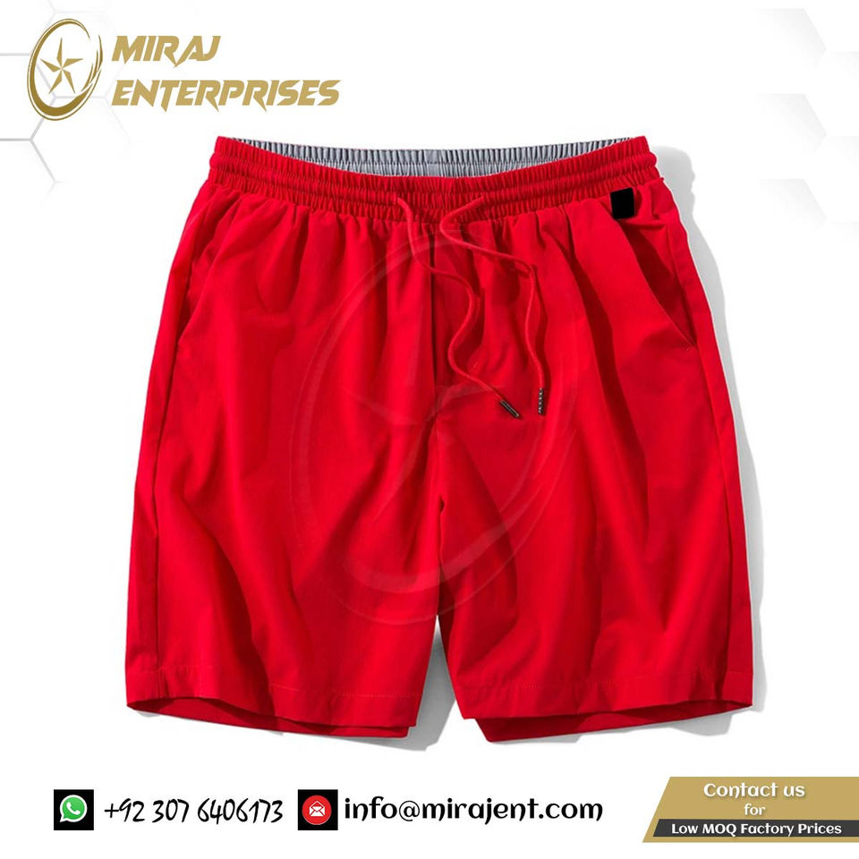 กางเกงขาสั้นหลวมกางเกงขาสั้นชายหาดขนาดใหญ่ขายส่ง OEM แฟชั่นกางเกงขาสั้นลําลองสีแดงผู้ชายฤดูร้อนแบรนด์ใหม่แห้งเร็ว