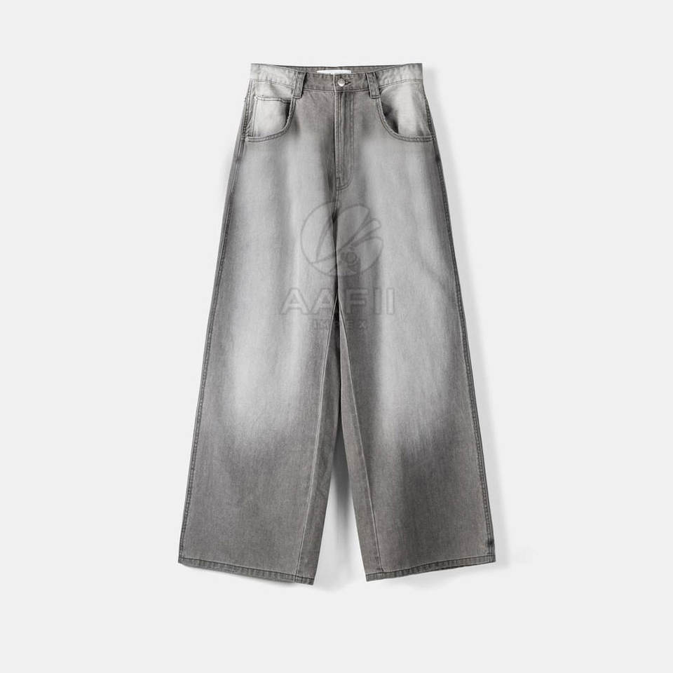 กางเกงยีนส์ทรงหลวม ดีไซน์ขากว้างและผิวสัมผัสเรียบเนียน ดูทันสมัยด้วยผ้าที่ให้ความรู้สึกนุ่มสบาย