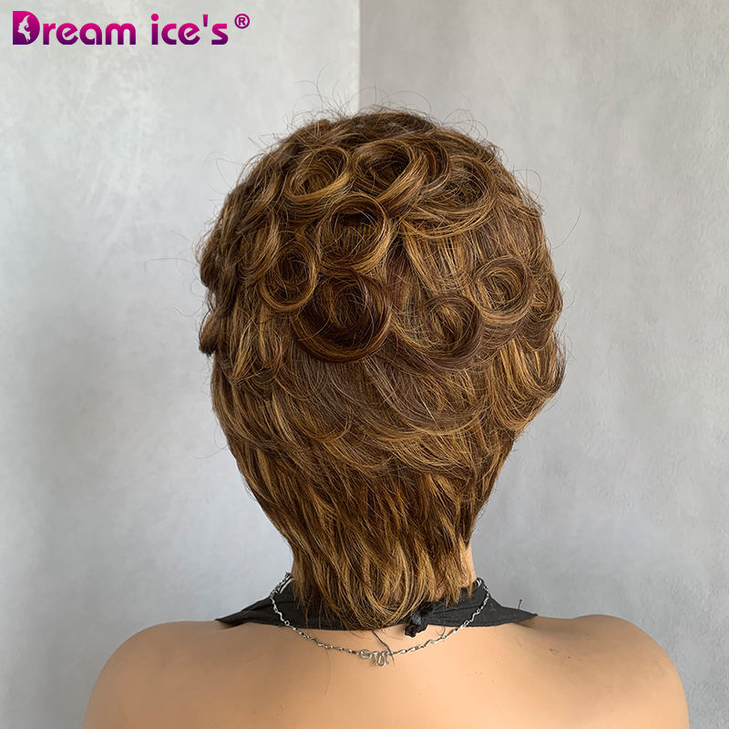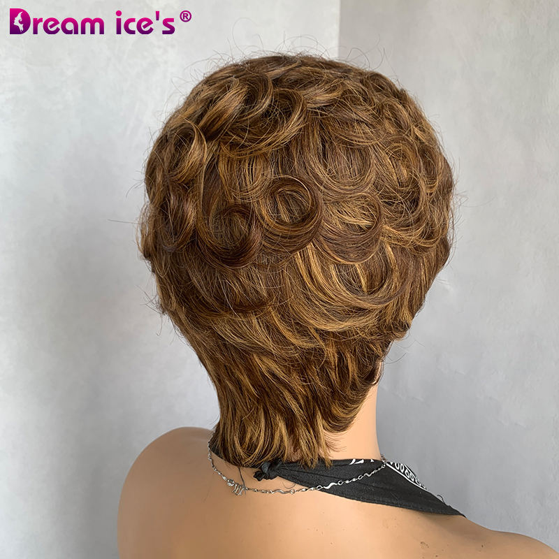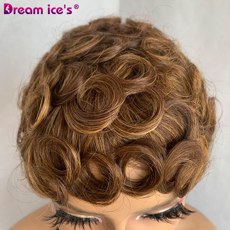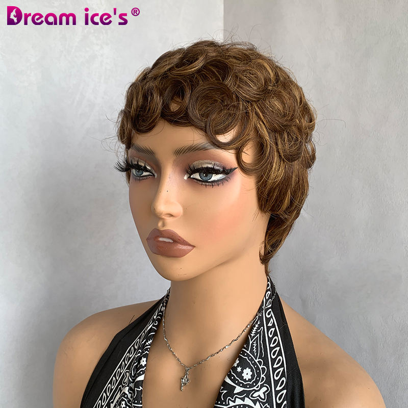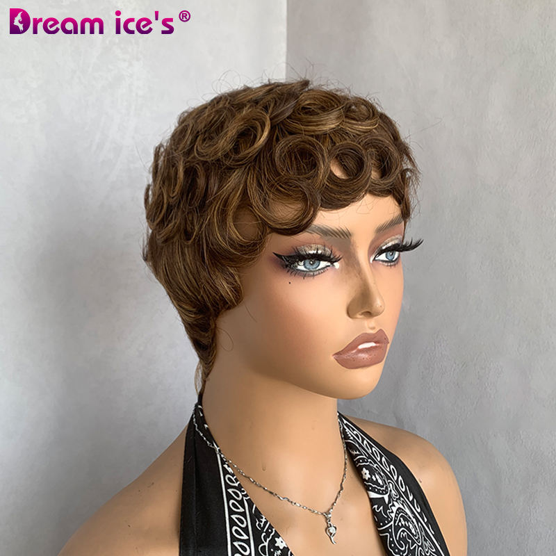 วิกผมแท้แบบบราซิลผมหน้าม้าสำหรับผู้หญิงผิวดำเครื่องตัดแบบพิกซี่