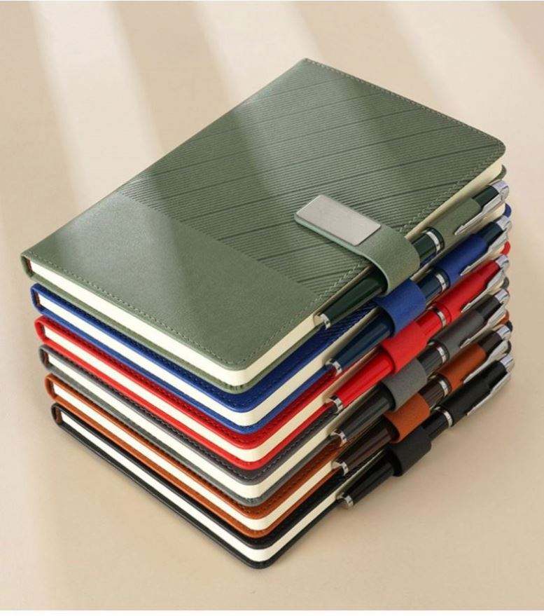 ชุดของขวัญสมุดโน้ตธุรกิจ/สำนักงาน/การเรียนรู้ ขนาด A5 แบบถอดได้ ปกหนัง พิมพ์ลายซิลค์สกรีนโลโก้ตามสั่ง ดีไซน์สวยงาม