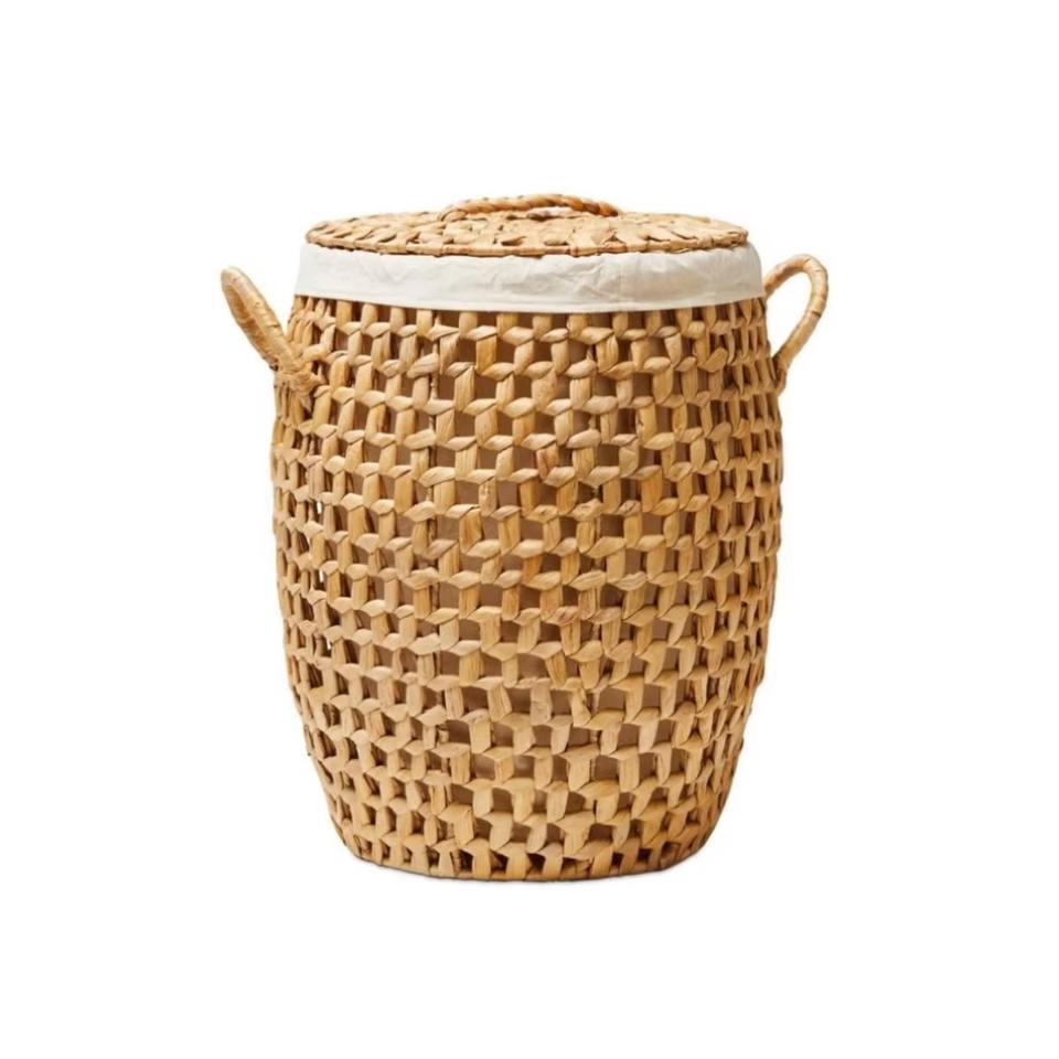 ตะกร้าผักตบชวาสานแบบหลวม:ขนาด: D17.7 x H22 นิ้ว