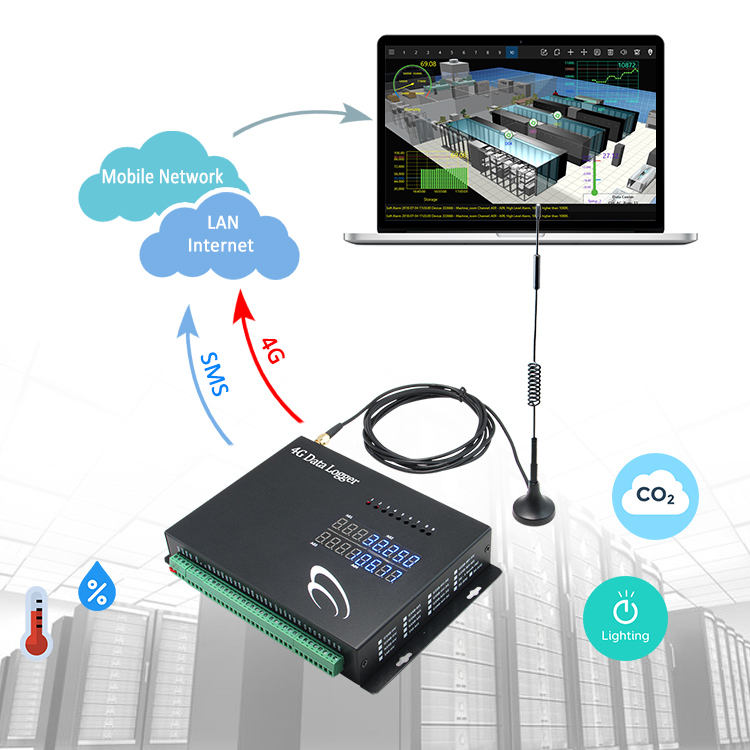 กล่องกระดาษ Lora เรือนกระจก IOT Modbus 4G อุปกรณ์บันทึกข้อมูลเครื่องติดตามตรวจสอบข้อมูลมิเตอร์วัดพลังงาน Modbus TCP มิเตอร์วัดพลังงาน