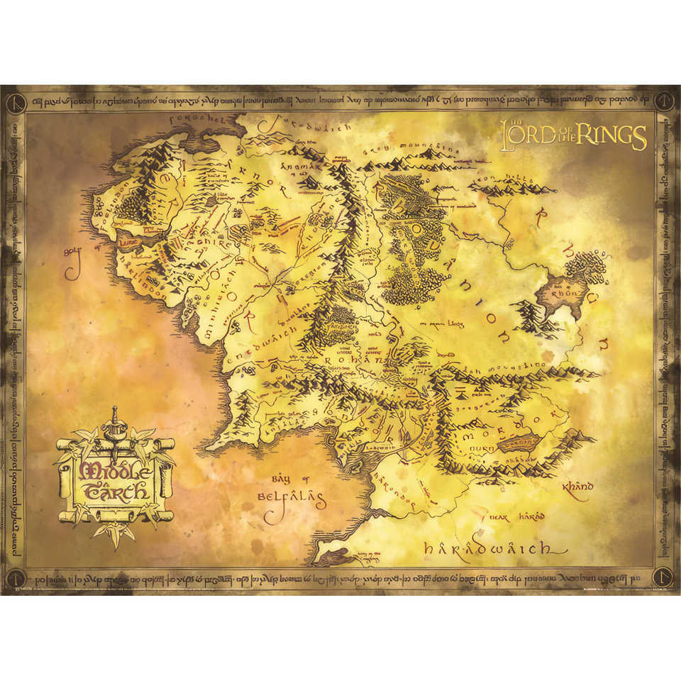 โปสเตอร์ติดผนังลอร์ดออฟเดอะริงส์ แผนที่มิดเดิลเอิร์ธ