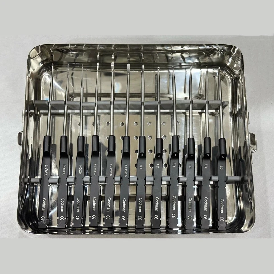 ชุดเครื่องมือขูดกระดูกสันหลังส่วนคอแบบไมโครดิสเซคโตเมตี้ โคดแมน คาร์ลิน จำนวน 14 ชิ้น พร้อมถาด