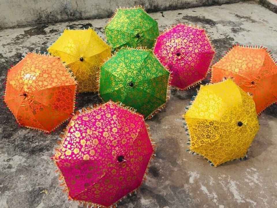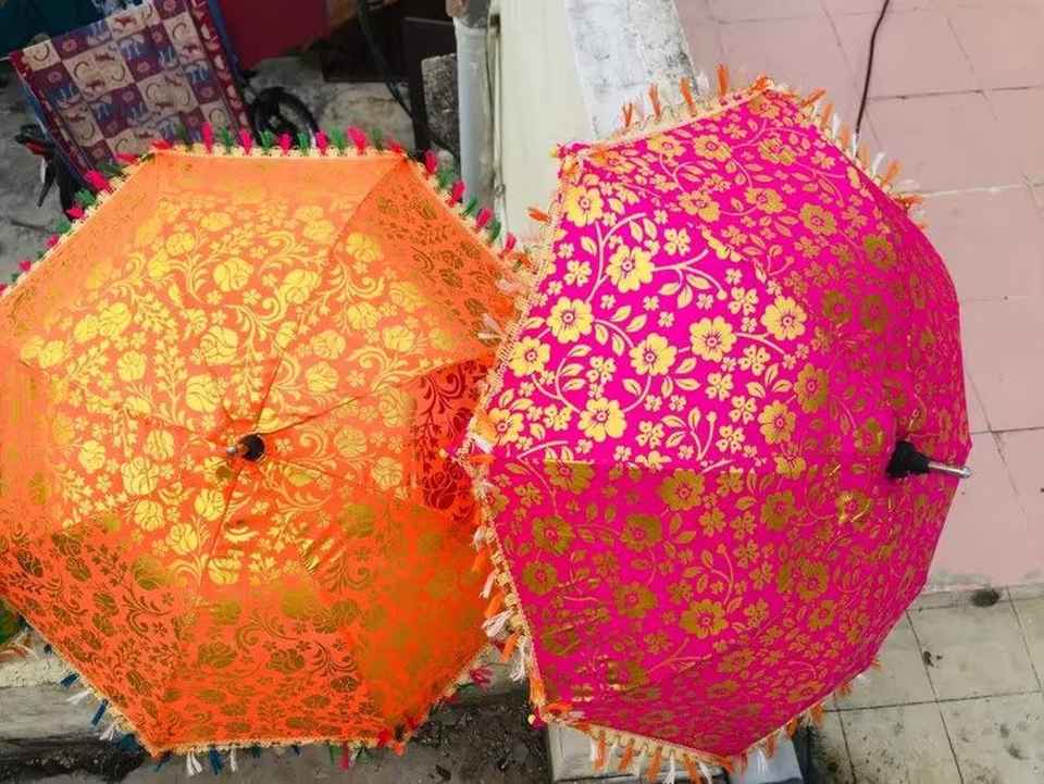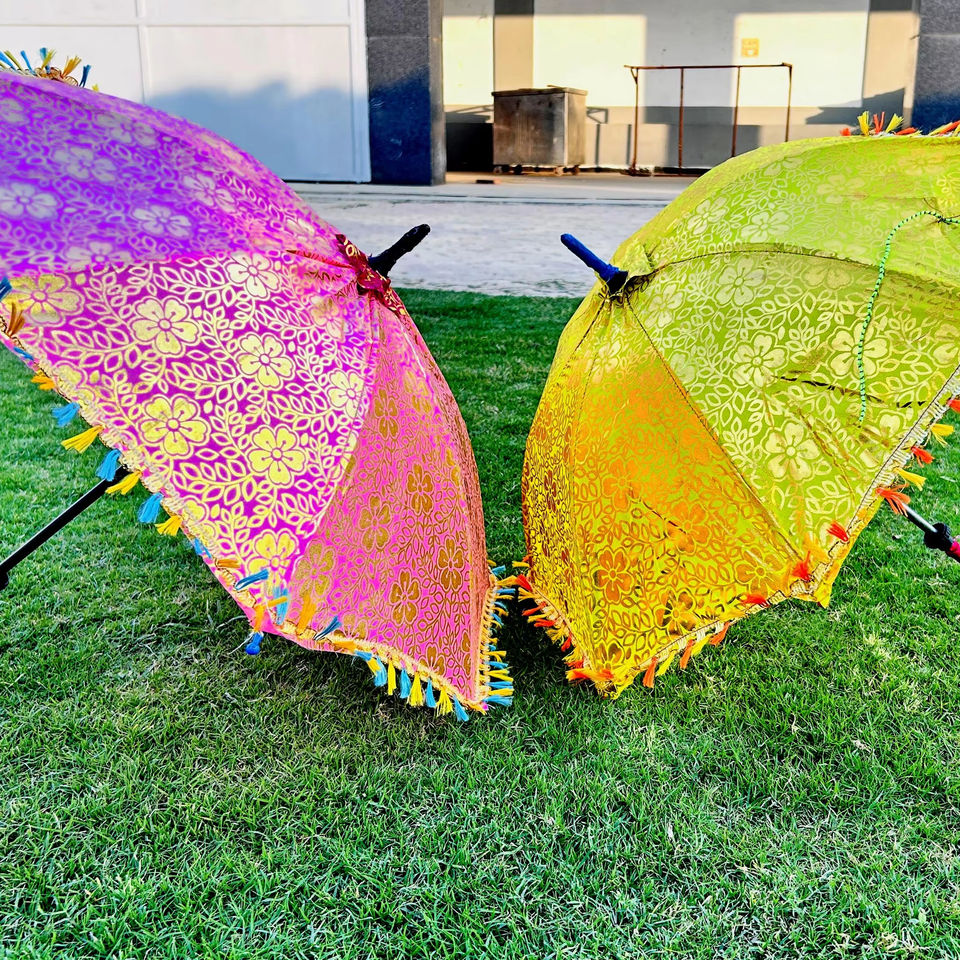 ร่มแต่งงานอินเดียลายดอกไม้ งานปักมือ สำหรับตกแต่งภายในและภายนอก ป้องกันแสงแดดและตกแต่ง