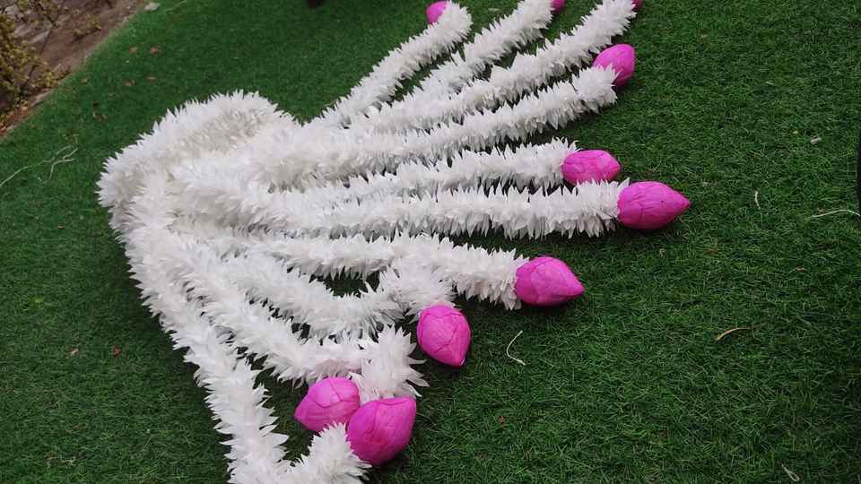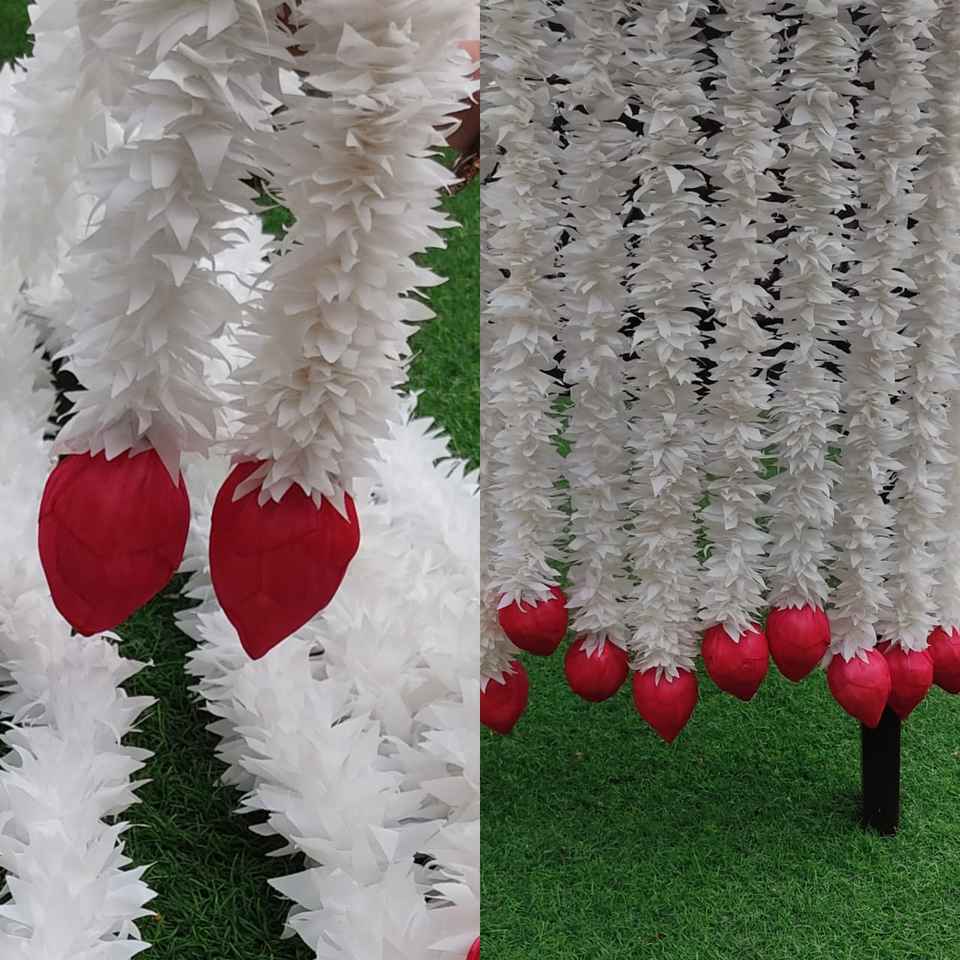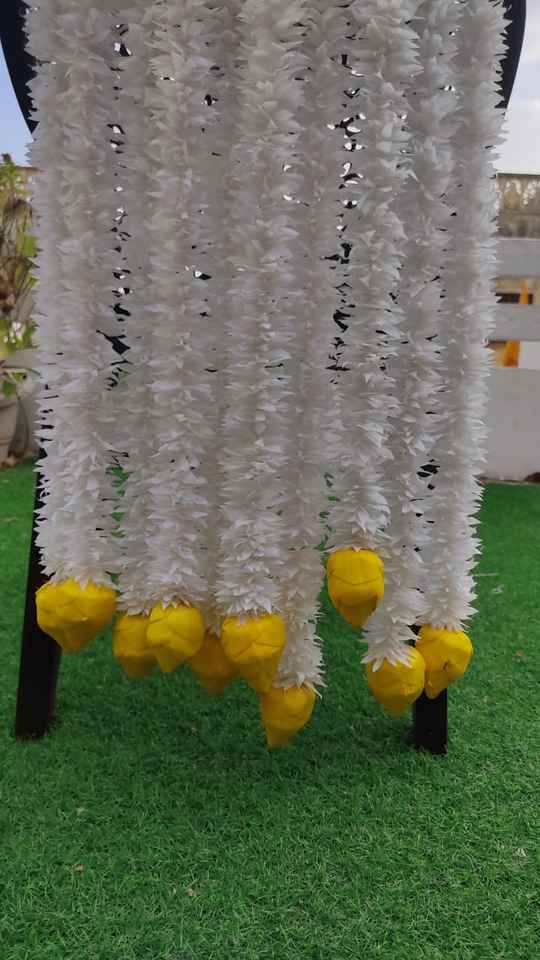 พวงดอกไม้สายเดี่ยวดอกบัวดอกจัสมินสีขาวตกแต่งงานแต่งงานฉากหลังของตกแต่งฮาลดี้ของตกแต่งสำหรับงานเลี้ยง