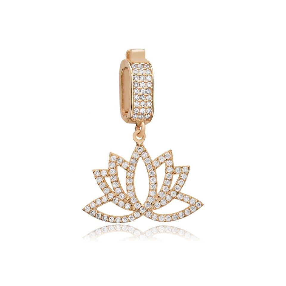 Lotus Design White Zircon Stone Charm for Bangle Turkish Wholesale Handcrafted 925 Sterling Silver Jewelry