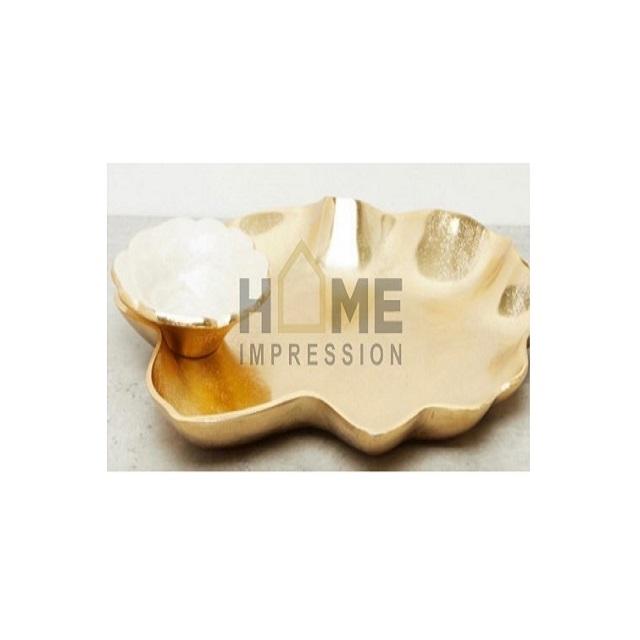 โลตัสเคลือบชิปและจุ่มมันวาวถาดที่มีชามดอกไม้