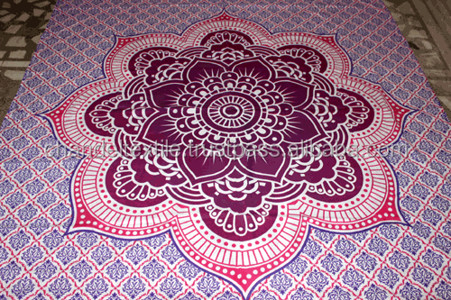 ผ้าปูผนังลายแมนดาลาพิมพ์ลายดอกบัวสไตล์ฮิปปี้ ผ้าคลุมเตียงโบฮีเมียน ผ้าห่มลายช้าง ขนาดควีนไซส์ 100%