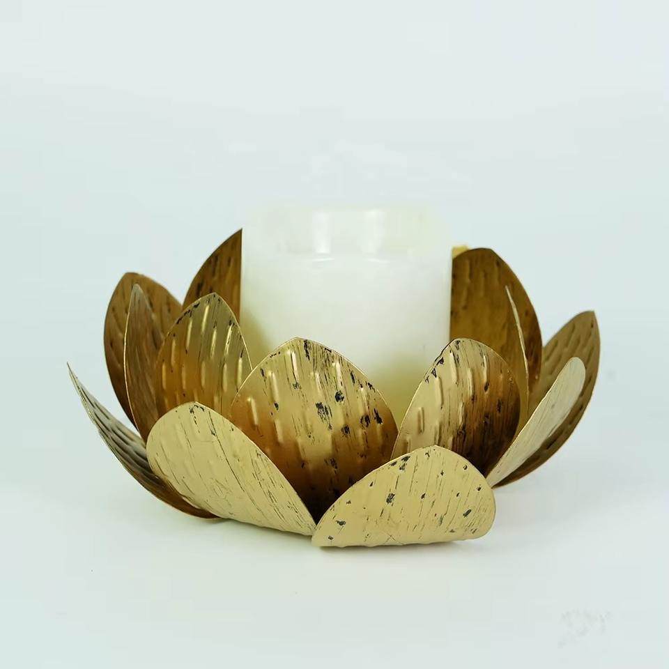 เชิงเทียนโลหะรูปทรงดอกบัวสีทอง ตกแต่งอย่างหรูหราสำหรับเทศกาล ตกแต่งตามฤดูกาล ตกแต่งเคาน์เตอร์ครัวและหน้าต่าง