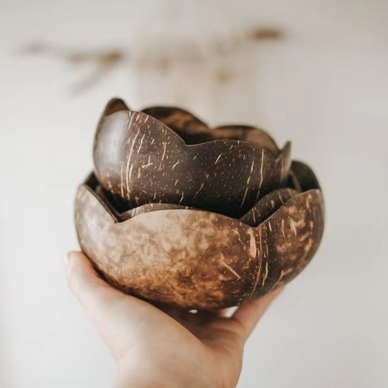 ชามกะลามะพร้าวทรงดอกบัวชามกะลามะพร้าวเป็นมิตรต่อสิ่งแวดล้อมผลิตจากมะพร้าวเวียดนามชามทนทานขายส่ง