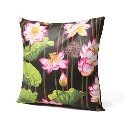 ปลอกหมอนอิงหนังเทียมพิมพ์ลายดอกบัวหิมะขนาด45X45ปลอกหมอนตกแต่งบ้านลายดอกไม้ทันสมัย