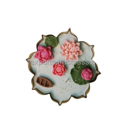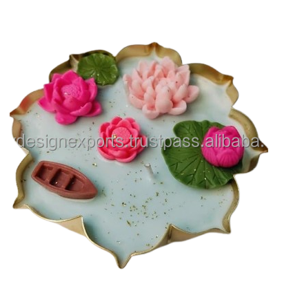เทียนอโรมาเทอราพีโลตัสอูลี่ทำมือขนาด4.5นิ้วเป็นมิตรกับสิ่งแวดล้อมพร้อมดีไซน์ดอกไม้สำหรับดิวาลี
