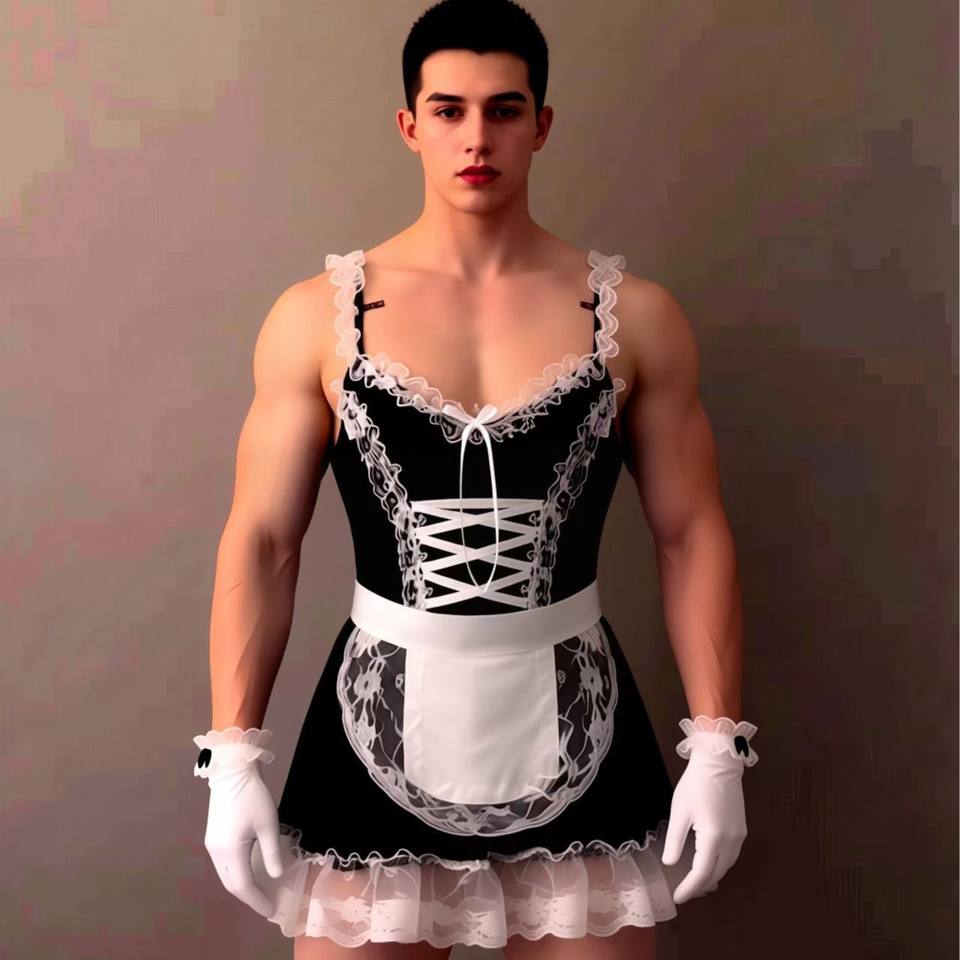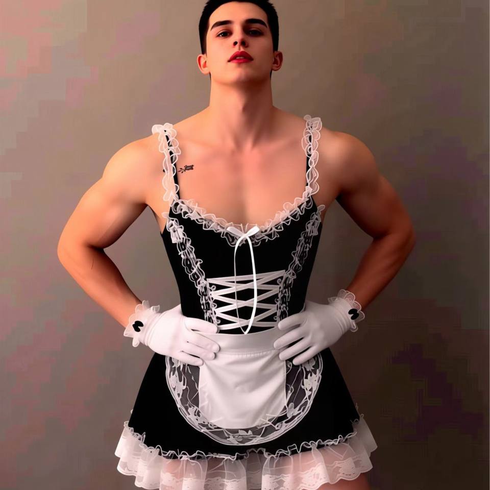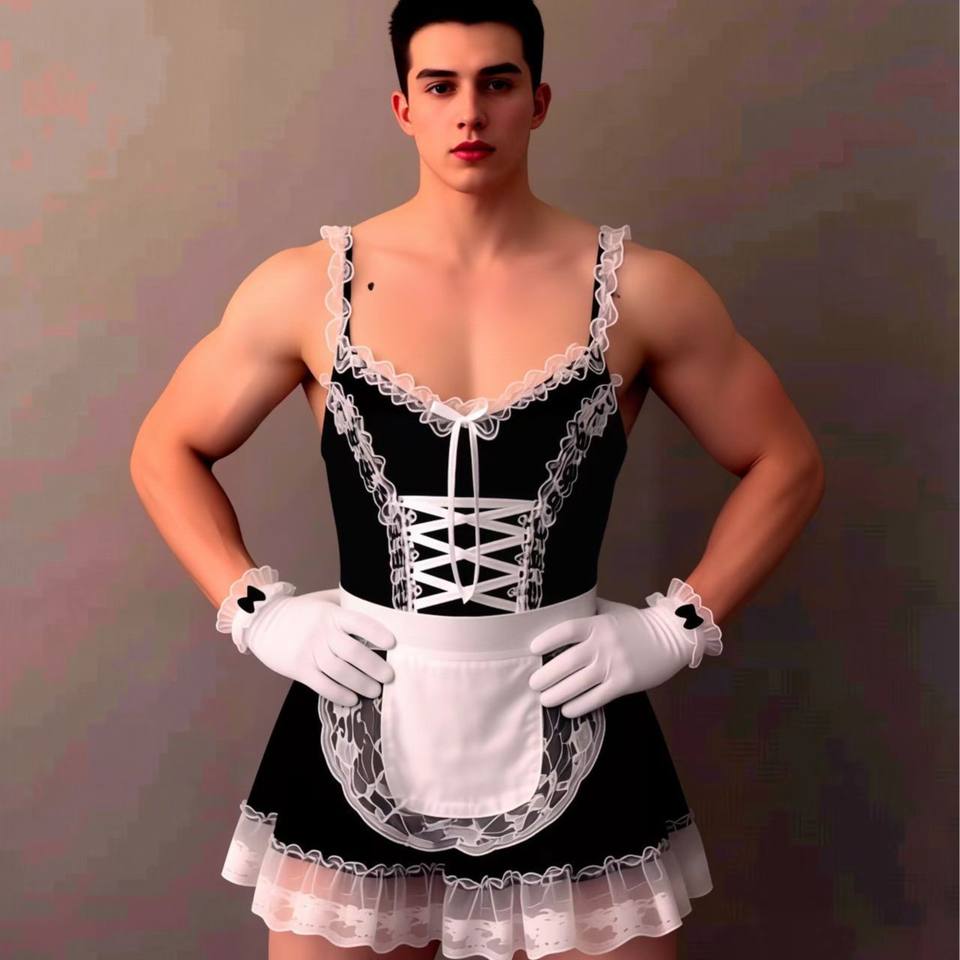 ชุดชั้นในเซ็กซี่สำหรับผู้ชาย Lou Bei สไตล์ Pure Desire บอดี้สูทซีทรู เสื้อคลุมแบบยูนิฟอร์ม แต่งลูกไม้ระบาย คอร์เซ็ท