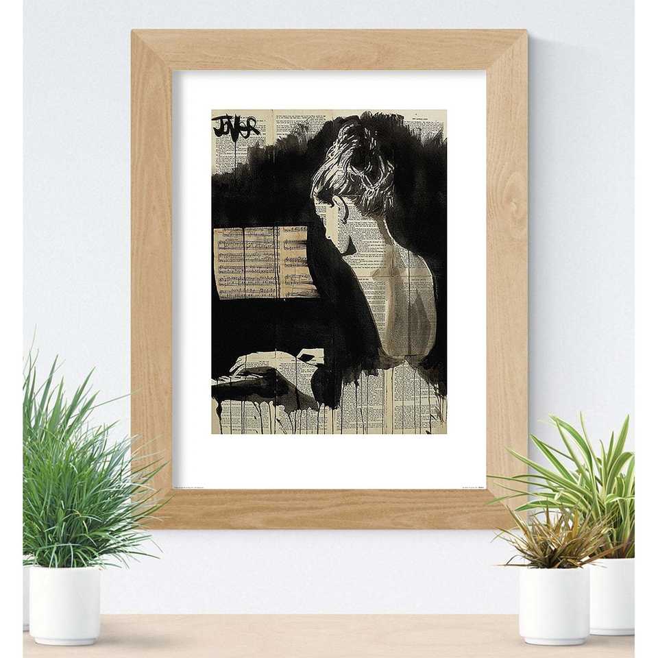 ภาพพิมพ์ศิลปะโซนาต้าของหลุยส์ โจเวอร์ ดีไซน์ทันสมัยพร้อมกลิ่นอายอาร์ตเดโค กรอบโลหะสำหรับตกแต่งผนังห้องนั่งเล่นหรือสำนักงาน