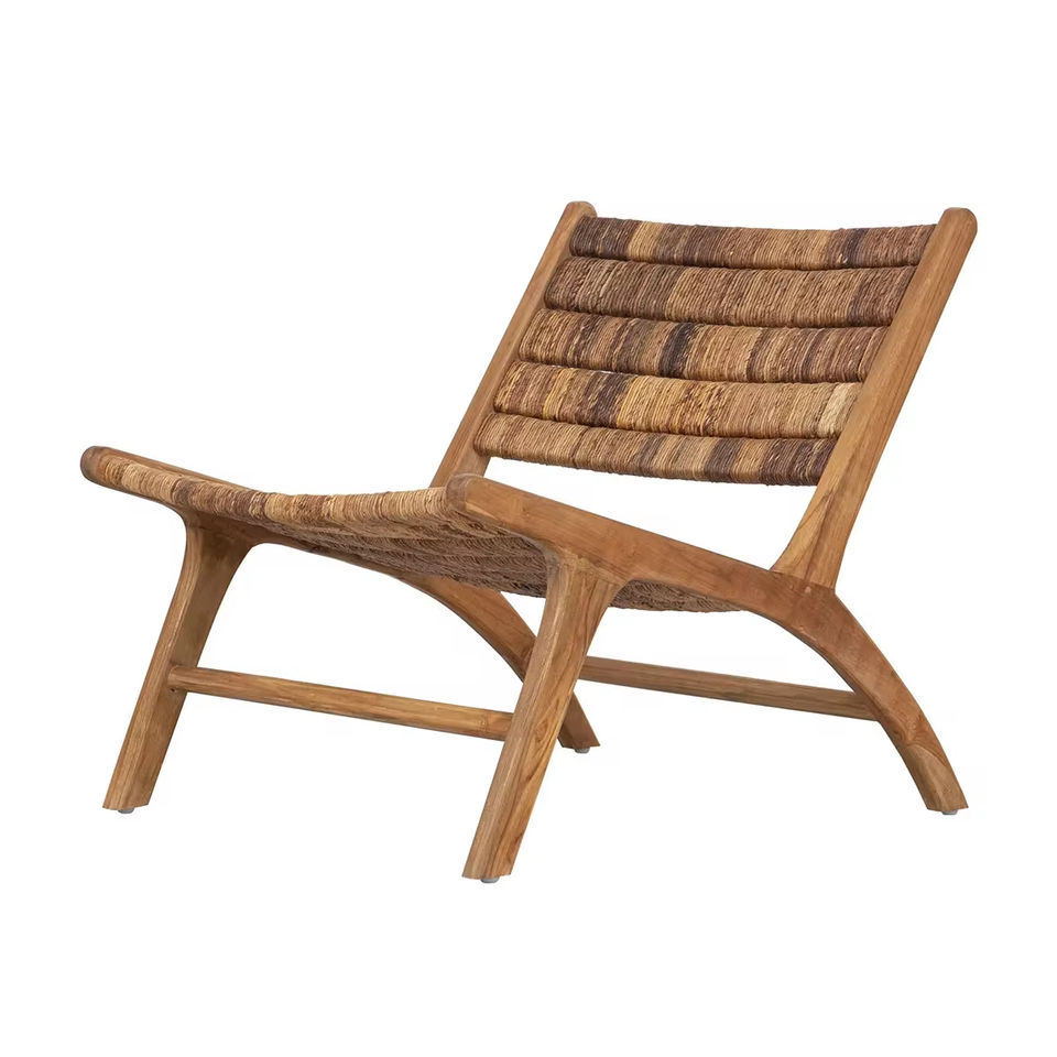 เก้าอี้พักผ่อนทำจากไม้สักแท้หวายสังเคราะห์วัสดุคุณภาพดีสำหรับใช้ภายในและภายนอกอาคาร