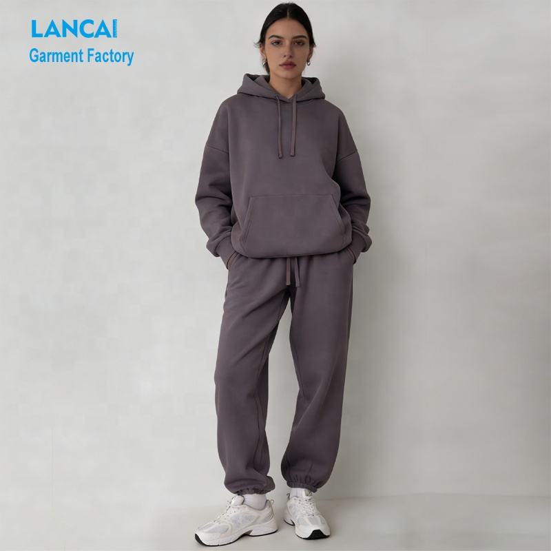ผู้ผลิตชุดลำลองแบบ OEM เสื้อฮู้ดและกางเกงจ็อกเกอร์ผ้าฟลีซ พร้อมโลโก้พิมพ์นูนตามสั่ง ชุดวอร์มสำหรับผู้หญิง คุณภาพสูง