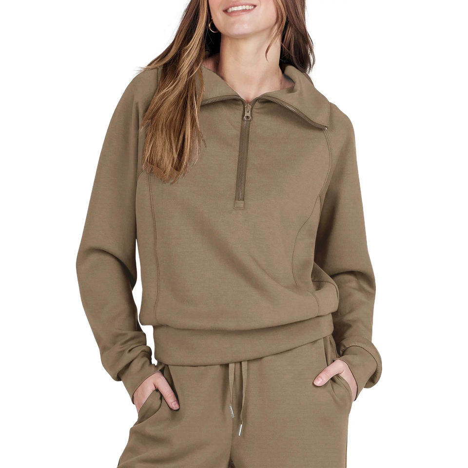 ชุดลำลองแบบสวมใส่สบาย เสื้อแจ็คเก็ตซิป ¼ ตัว พร้อมกางเกงขายาวทรงกว้าง ชุดวอร์มผู้หญิง ชุดเซ็ต 2 ชิ้น