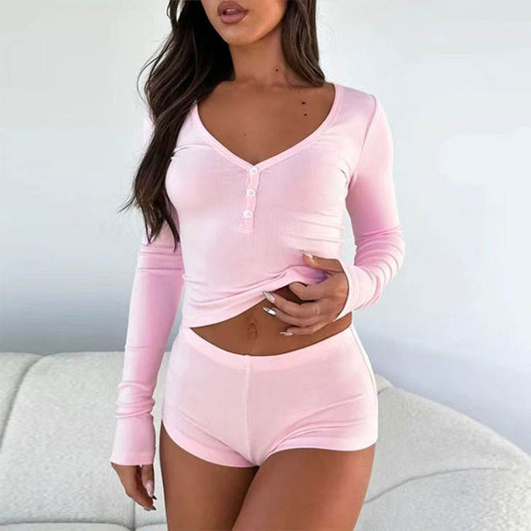 ชุดเสื้อผ้า2ชิ้นแขนยาวกางเกงขาสั้นสำหรับผู้หญิงชุดอยู่บ้านชุดเสื้อผ้า2ชิ้นและกางเกงขาสั้นสำหรับผู้หญิง