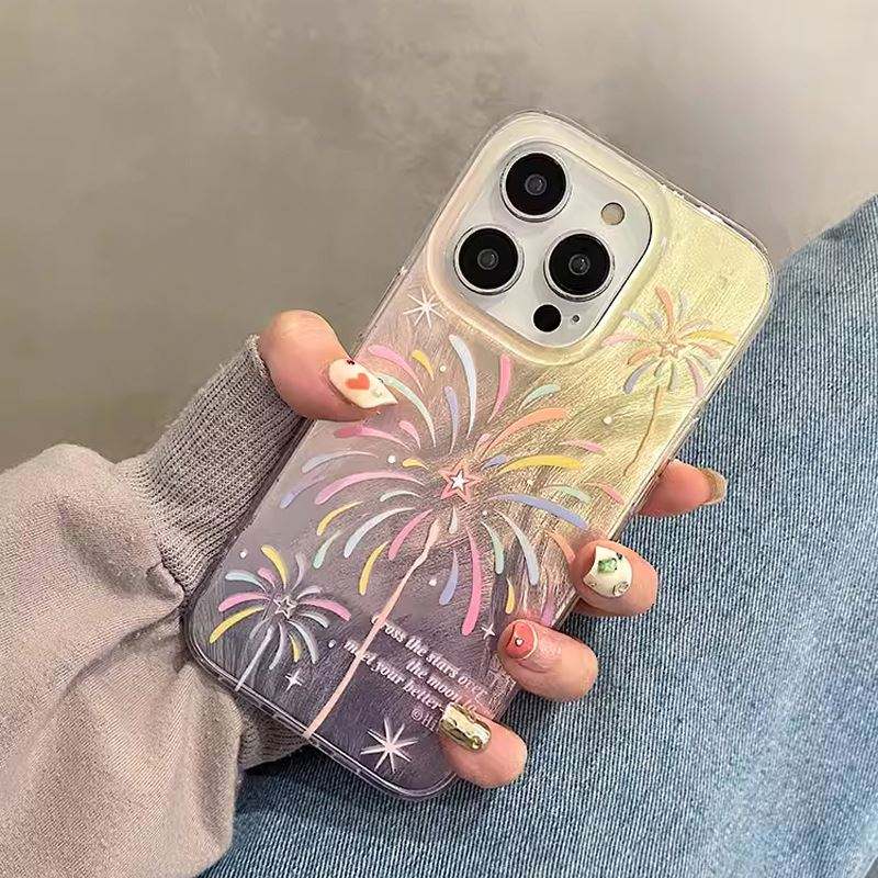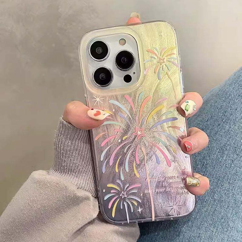 Love Fireworks Acrylic Phone Case for iPhone 16 15 14 Pro Max 13 12 11 Pro XS 17 Plus Shockproof Cover Screen Protector Casing