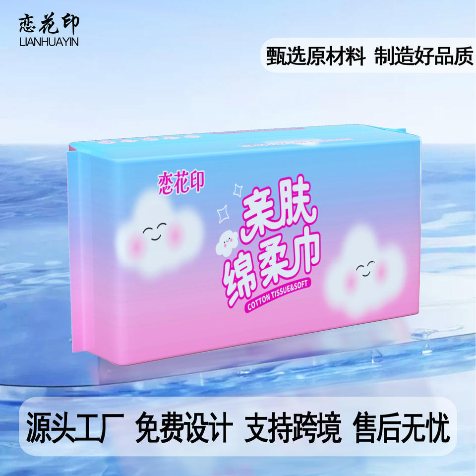 Love Flower Seal Cotton Facial Tissue 20x20cm 80-Pack Soft Gentle For Face Cleaning