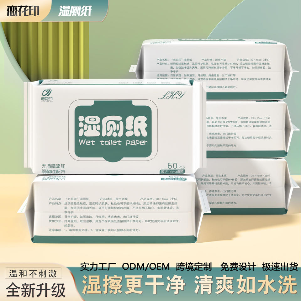 ทิชชู่เปียกแบบใช้แล้วทิ้ง Love Flower Seal 60 แผ่น เนื้อหนาพิเศษจากเยื่อไม้ สำหรับทำความสะอาดในครัวเรือน