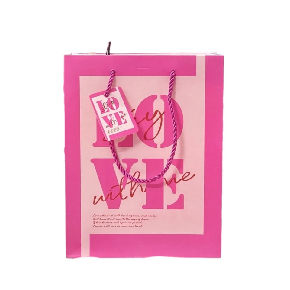 ถุงกระดาษของขวัญน่ารักพื้นหลังสีชมพูพร้อมที่จับถุงบรรจุภัณฑ์ของขวัญที่ปรับแต่งได้เป็นมิตรกับสิ่งแวดล้อมสำหรับงานแต่งงานงานอีเว้นท์ (สไตล์03)