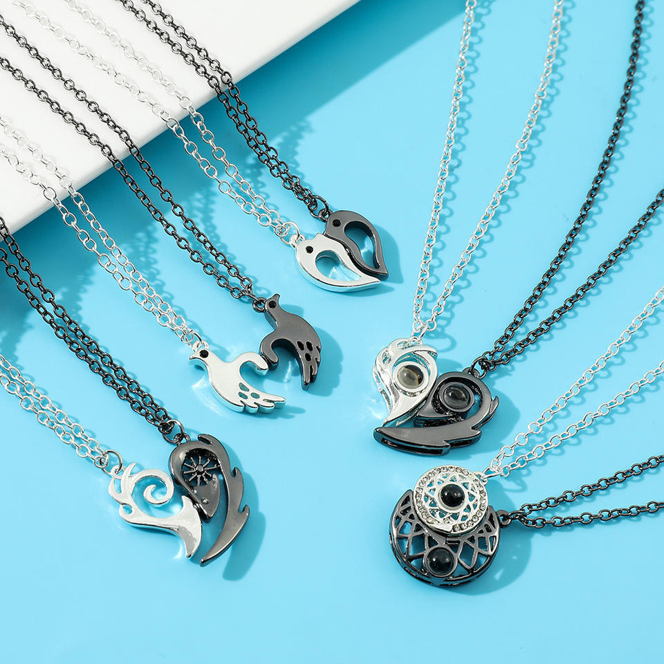สร้อยคอแม่เหล็กรูปหัวใจคู่รักฉันรักคุณจี้สร้อยคอความทรงจำ100ภาษาต่างๆสร้อยคอฉาย