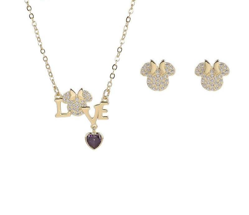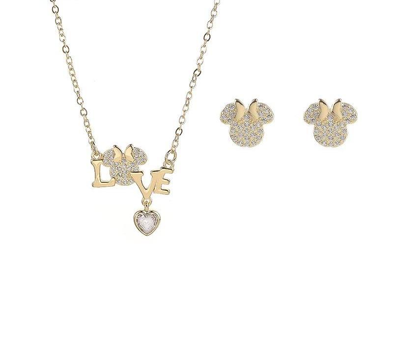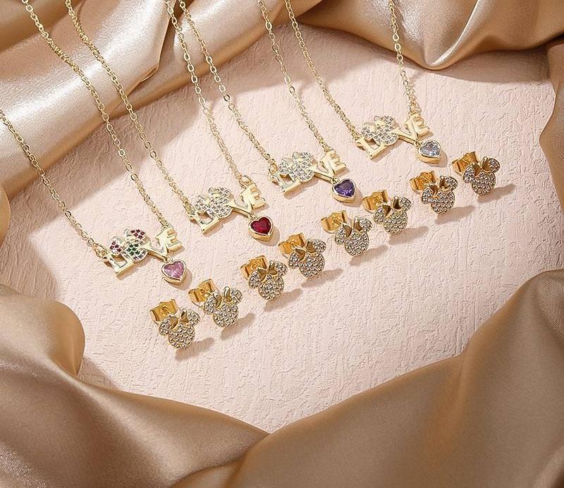 ชุดเครื่องประดับรูปหัวใจชุบทอง 18K จาก Love Motif ขายส่ง สร้อยคอและต่างหูประดับเพชรคิวบิกเซอร์โคเนีย ดีไซน์ทันสมัย ผลิตจากโลหะผสมทองแดงคุณภาพสูง