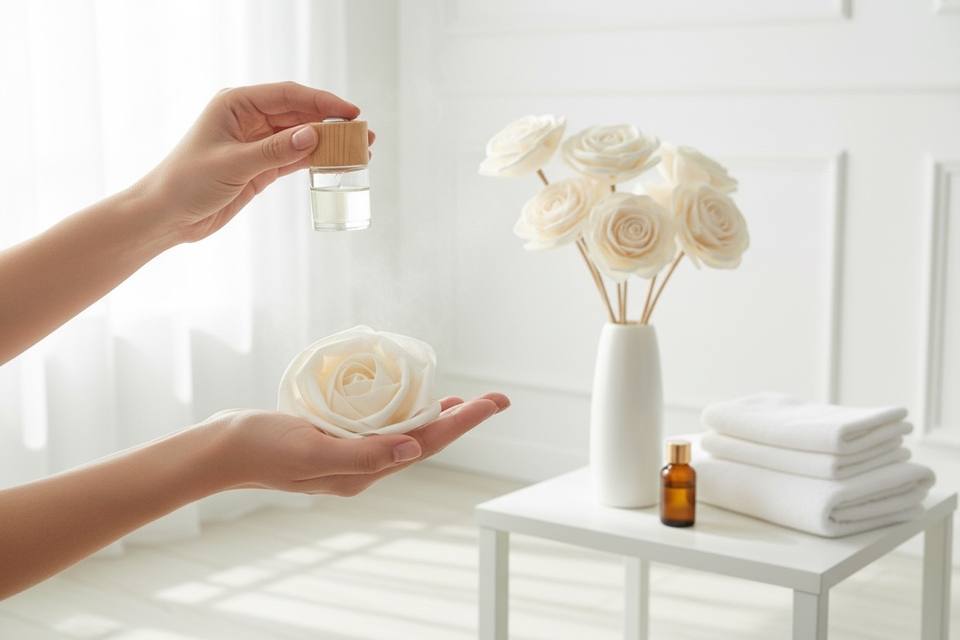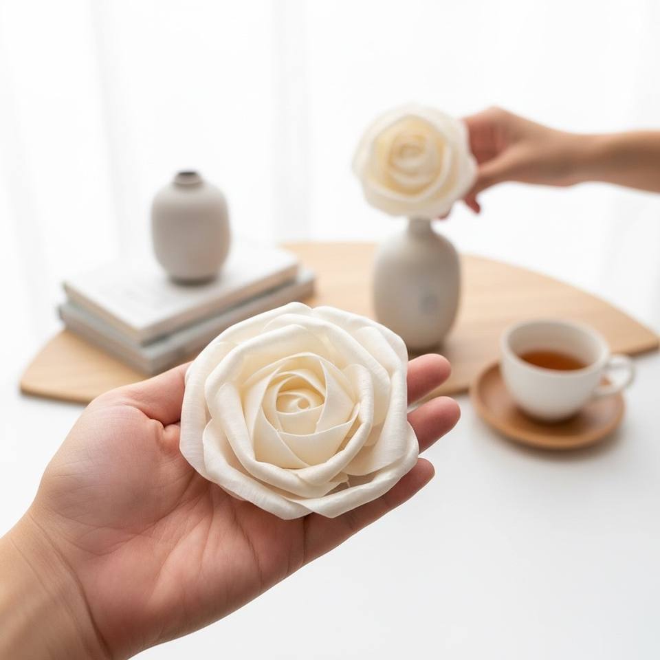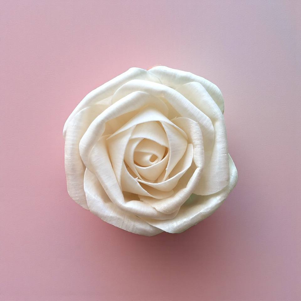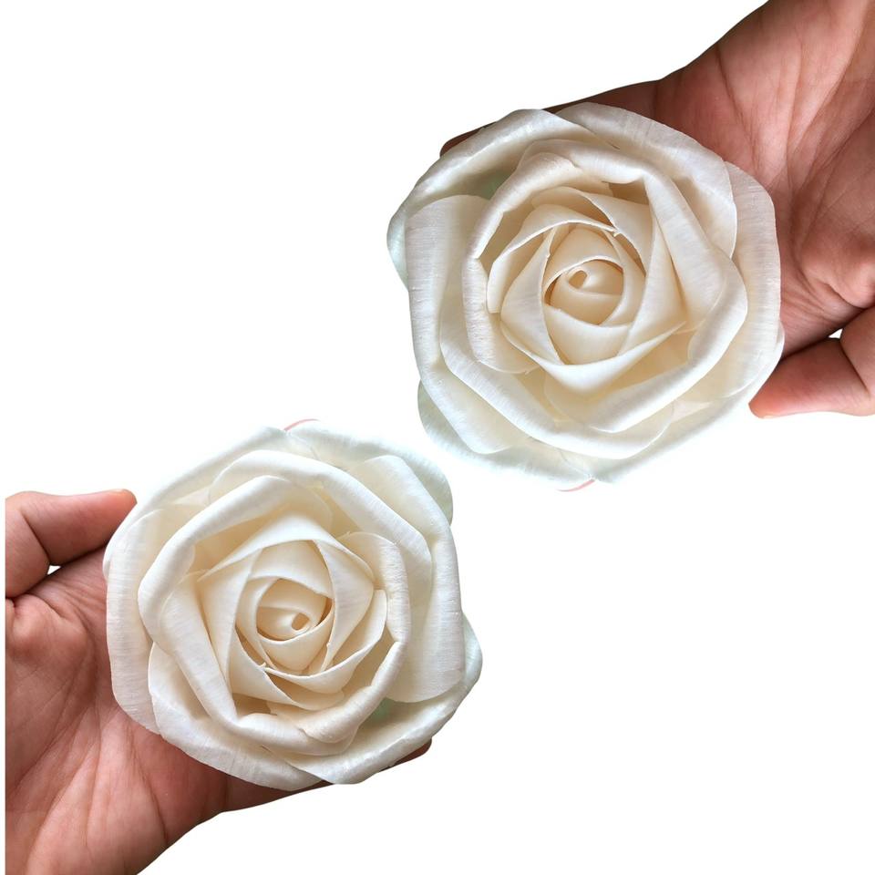 ดอกไม้รักโรส โซล่าวู้ด ขนาด 8-8.5 ซม. ก้านไฟเบอร์จากต้นเซสบาเนีย สำหรับอโรมาเธอราพี ทำด้วยมือ