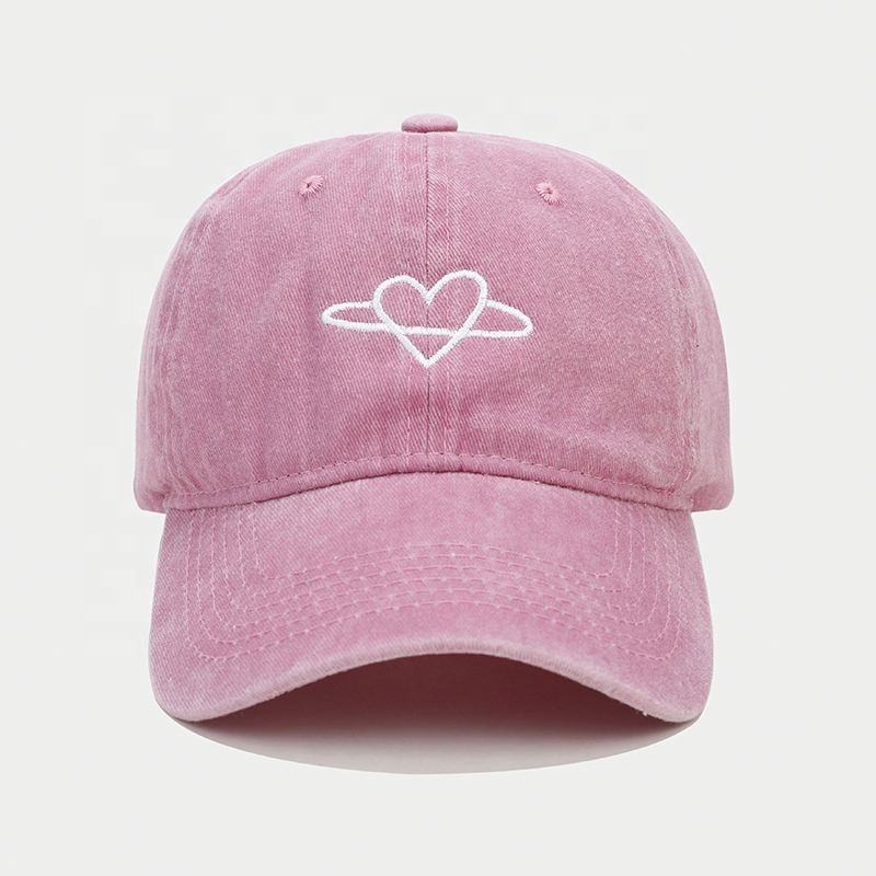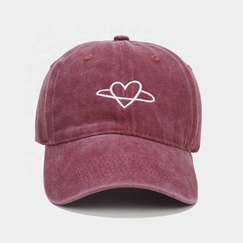 หมวกแก๊ปเบสบอลรูปหัวใจสำหรับชายและหญิงหมวกแก๊ปปีกโค้งแบบนิ่มปักลายแนวสตรีทอินเทอร์เน็ต