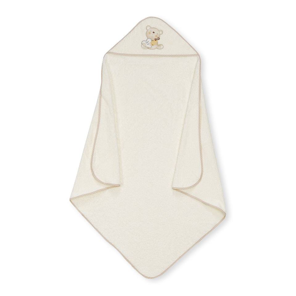 รักคุณนะ โมด ผ้าเช็ดตัวอาบน้ำ 100x100 ซม. 400 GSM ผ้าคอตตอนเทอร์รี่ พร้อมแปรงและหวี ลายหมีสีเบจ สำหรับเด็ก ห้องน้ำ