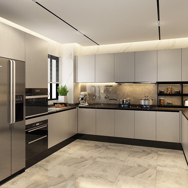 Love Zone Modern Open Plan High Gloss Beige Wall Kitchen Cabinets with Undermount Sink for Hardware and 1 Year Warranty