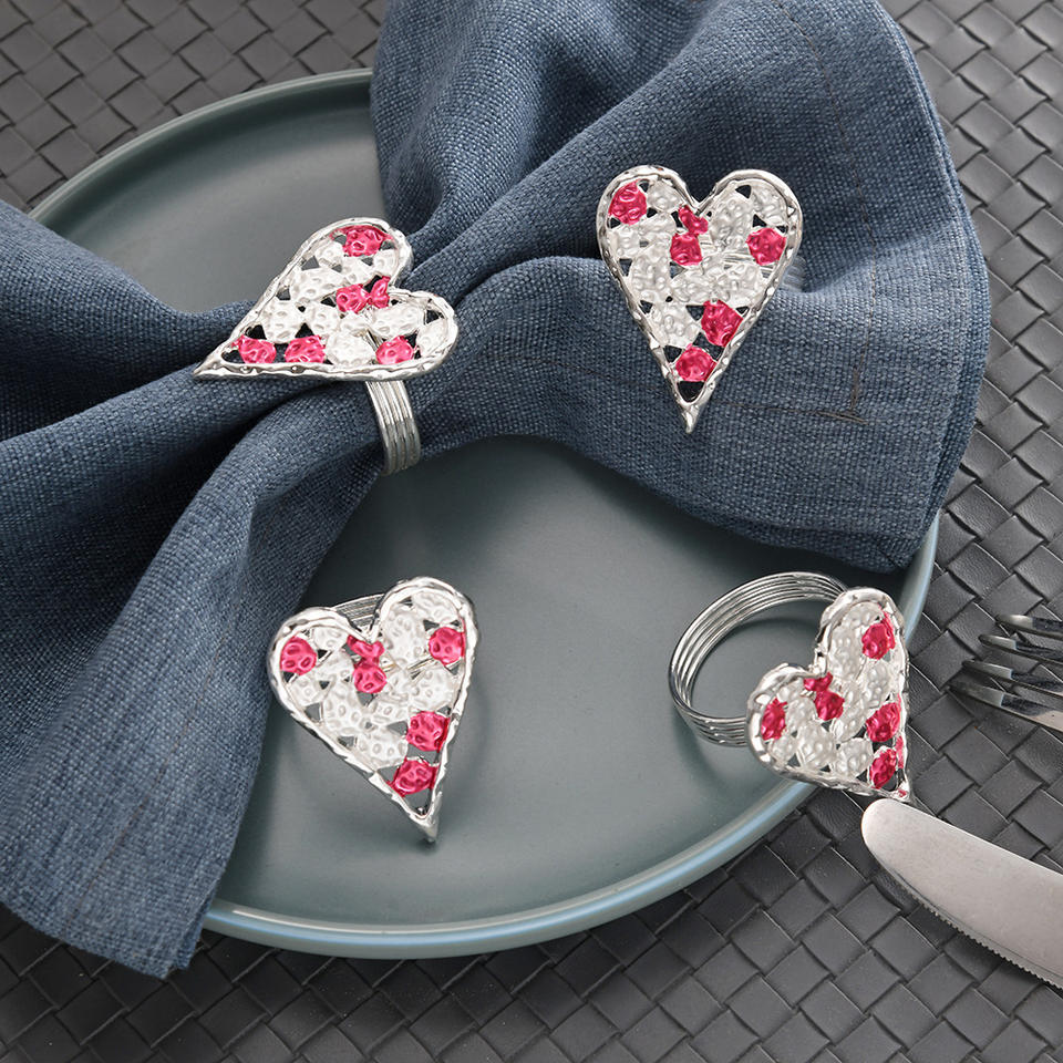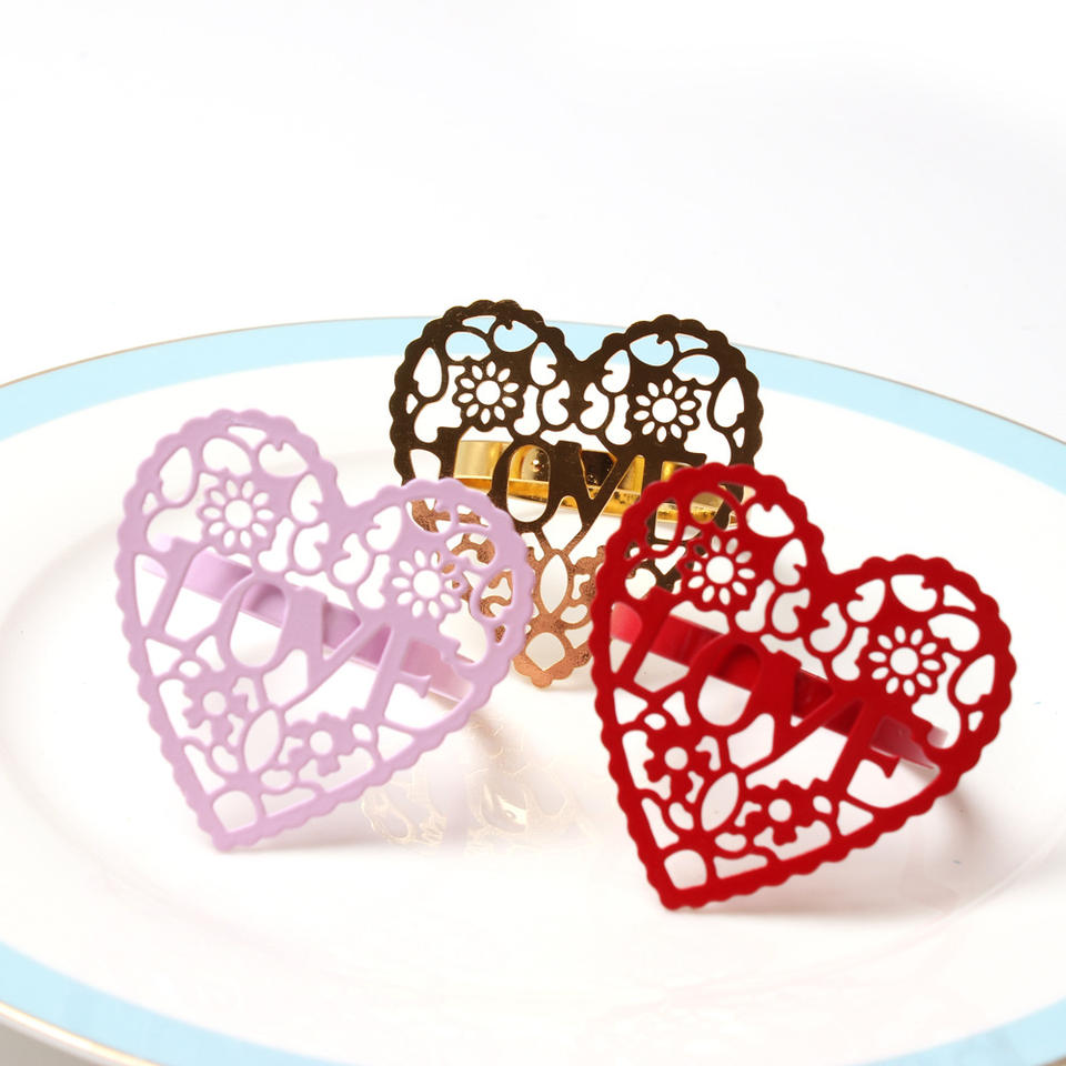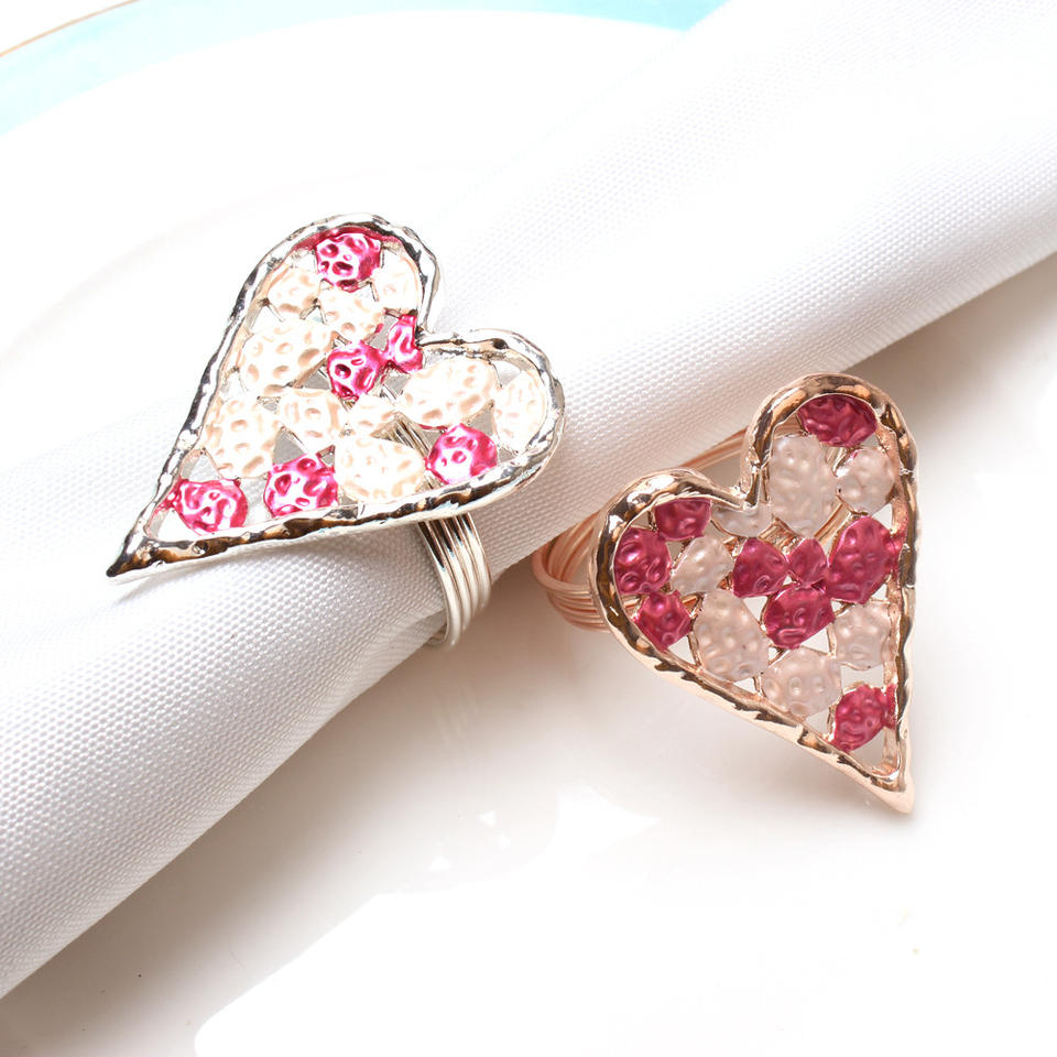 แหวนรัดผ้าเช็ดปากสไตล์อเมริกันรักษ์โลกสำหรับงานแต่งงาน รูปหัวใจเคลือบโลหะ ดีไซน์สร้างสรรค์ สำหรับโรงแรม ร้านอาหารตะวันตก